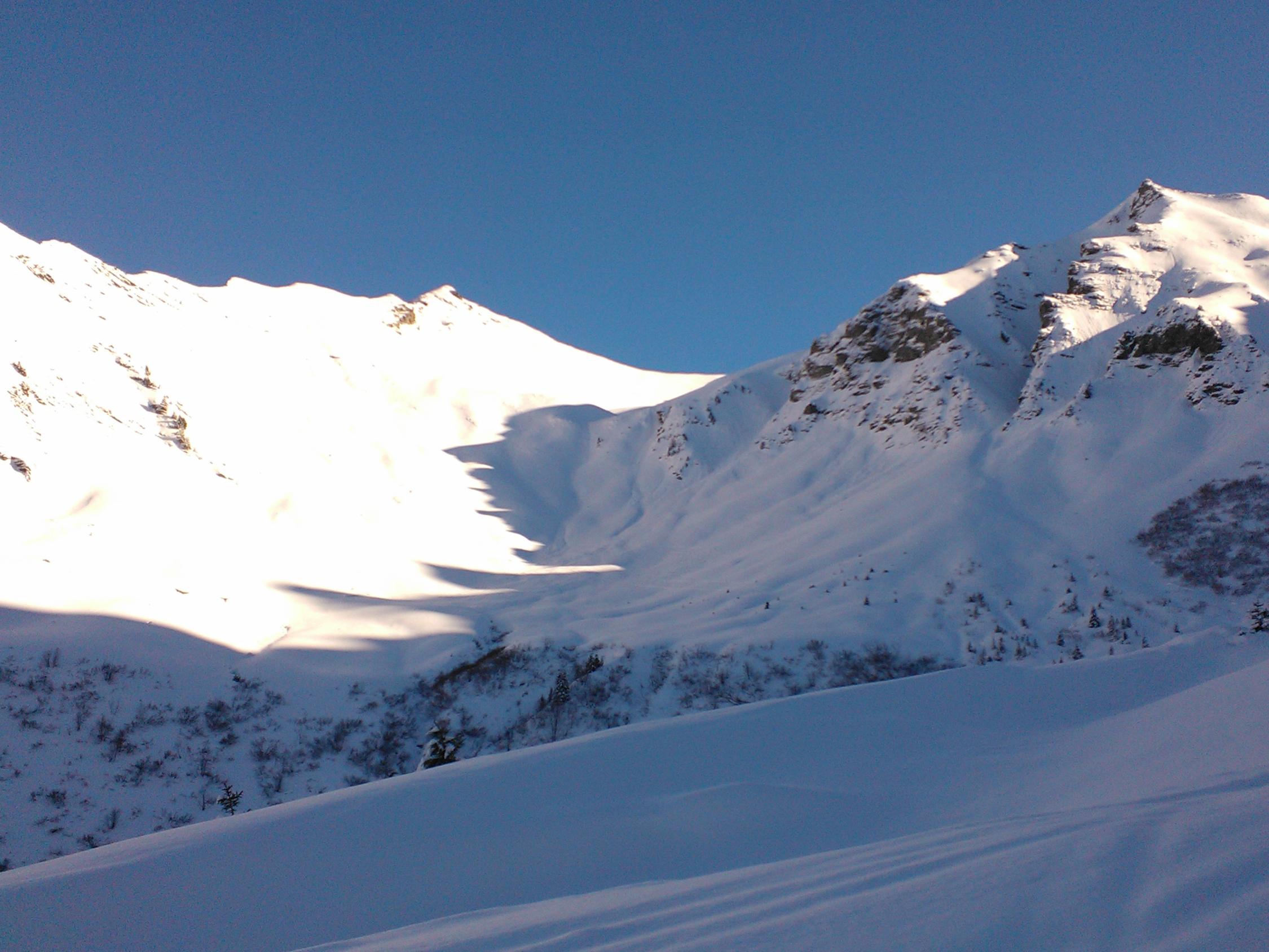 Brillantes Wetter, minus 5 Grad im Fildrich. Da an der Galmschibe eine mittlere Völkerwanderung im Gange war, bin ich Richtung Drümännler gegangen. Wenn man schon das Glück hat, manchmal unter der Woche anstatt zu arbeiten auf Tour zu gehen, möchte man ja nicht Schlange stehen wie an der Coop-Kasse :-). Am Drümännler waren nur 3 Personen, und auf dem Gipfel war ich alleine. Aufstieg in guter Spur problemlos, Gipfelgrat ist jetzt ganz verschneit. Abfahrt ins Chummli super, 20 cm Pulver auf (endlich) guter Unterlage, daher schnell wieder Felle drauf und noch auf den Bodezegrat aufgestiegen. Dieser Hang war genial zu fahren und unverspurt... Dann im Chummli kurz etwas pappig, aber ab dem oberen Steibode bis zum Parkplatz wieder Pulver vom feinsten. War das eine Freude!