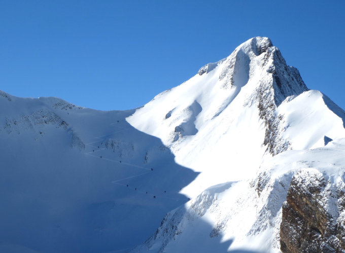 Wunderbare Abfahrtsverhältnisse mit stiebendem Pulverschnee. Ein lohnender Tag für Skitouren!