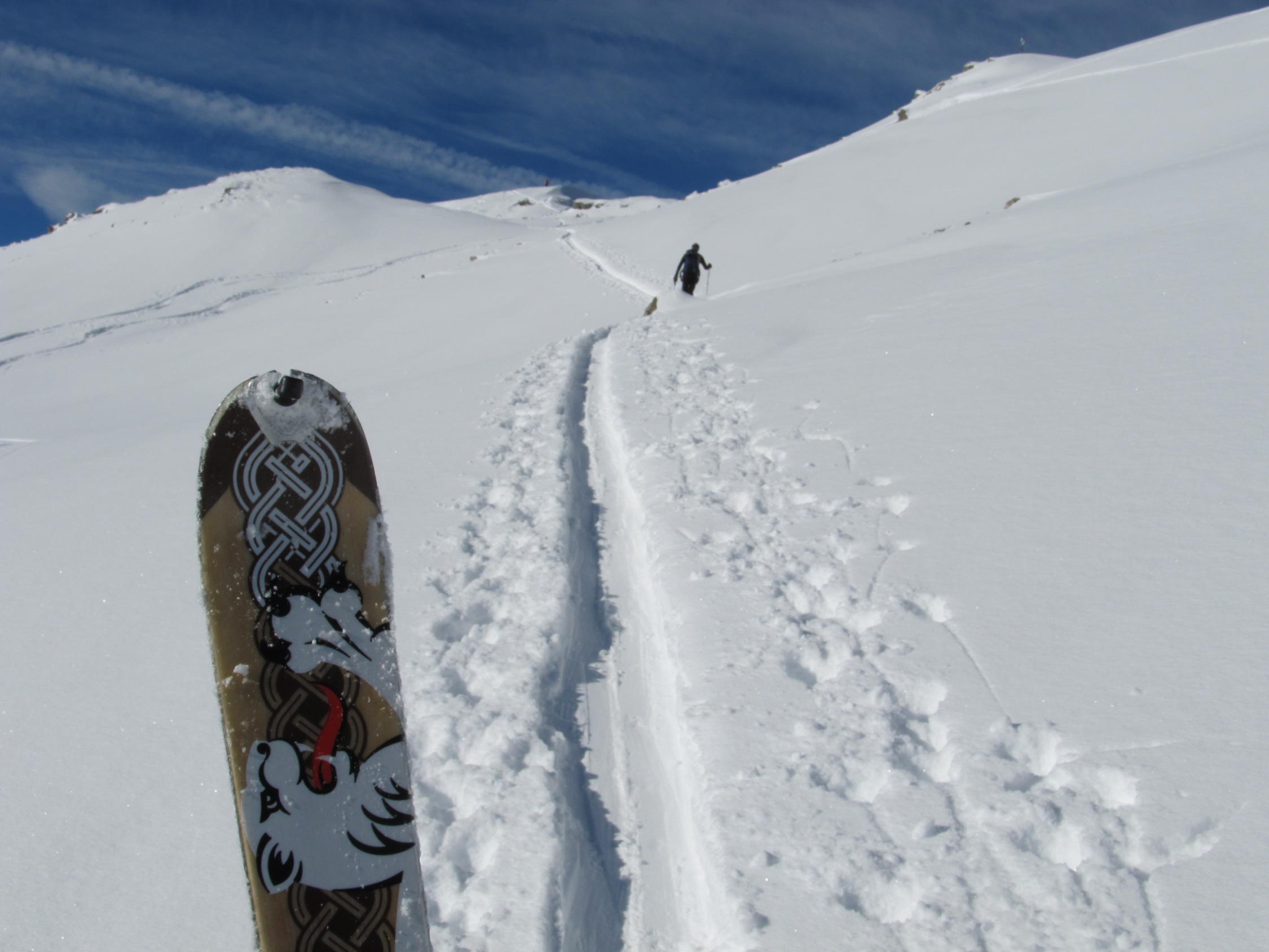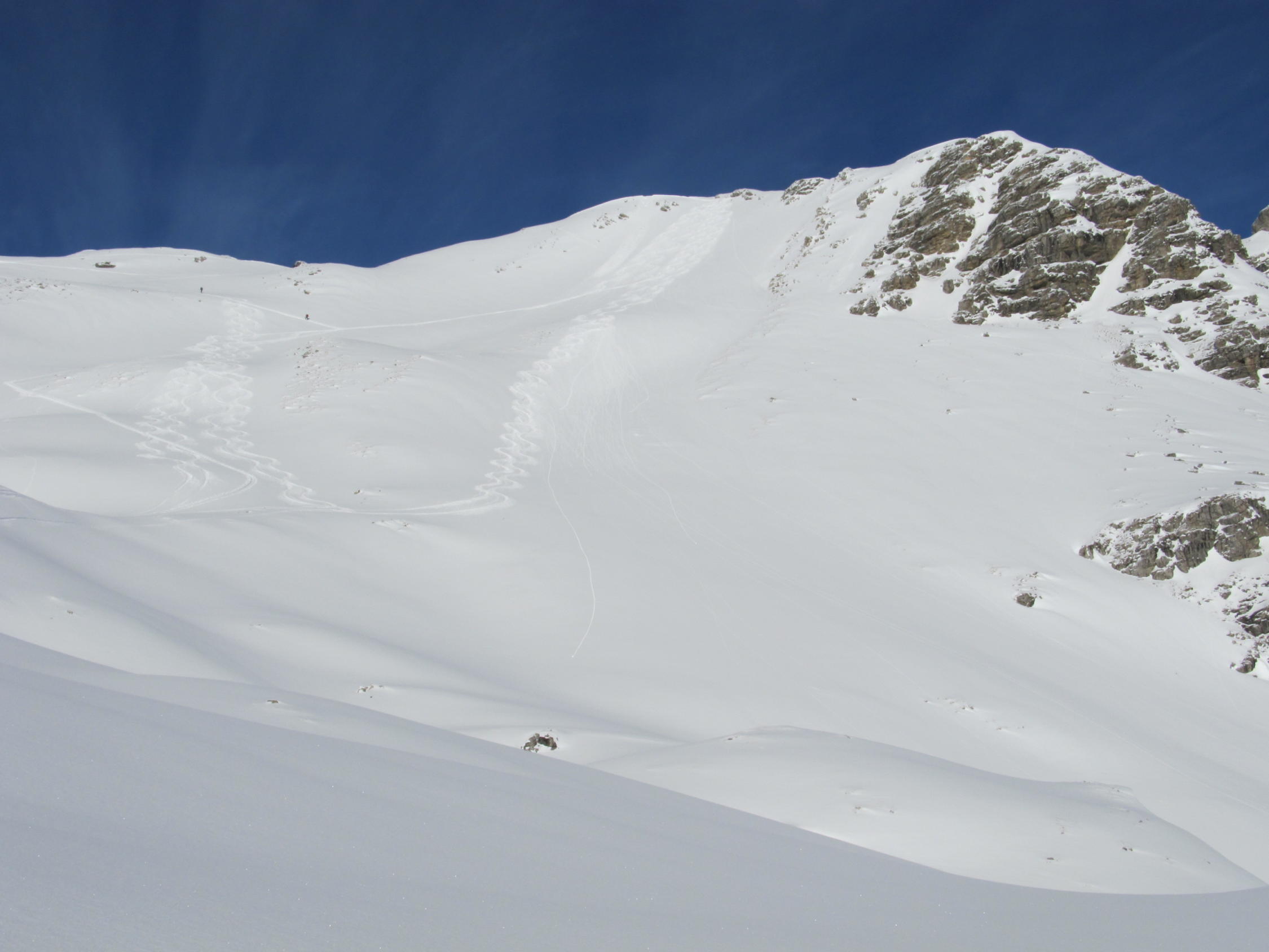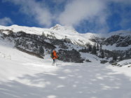 EnMit Wechsel der Exposition auf SO und O um die 25cm Neuschnee. Im Gipfelbereich teilweise abgeweht und gewisser Steinkontakt nicht vermeidbar. Erstklassiges Wetter bei schwachem Wind und kühlen Temperaturen. Abfahrt zwischen 2100 bis 1500 m im schönsten Pulver. In Summe ca. 25 Pers. am Gipfel heute. Weitere Abfahrt über Ziehweg Schwarzenberghütte bis Giebelhaus ratsam, aber teilweise steinig. Breite Stoiski empfehlenswert.