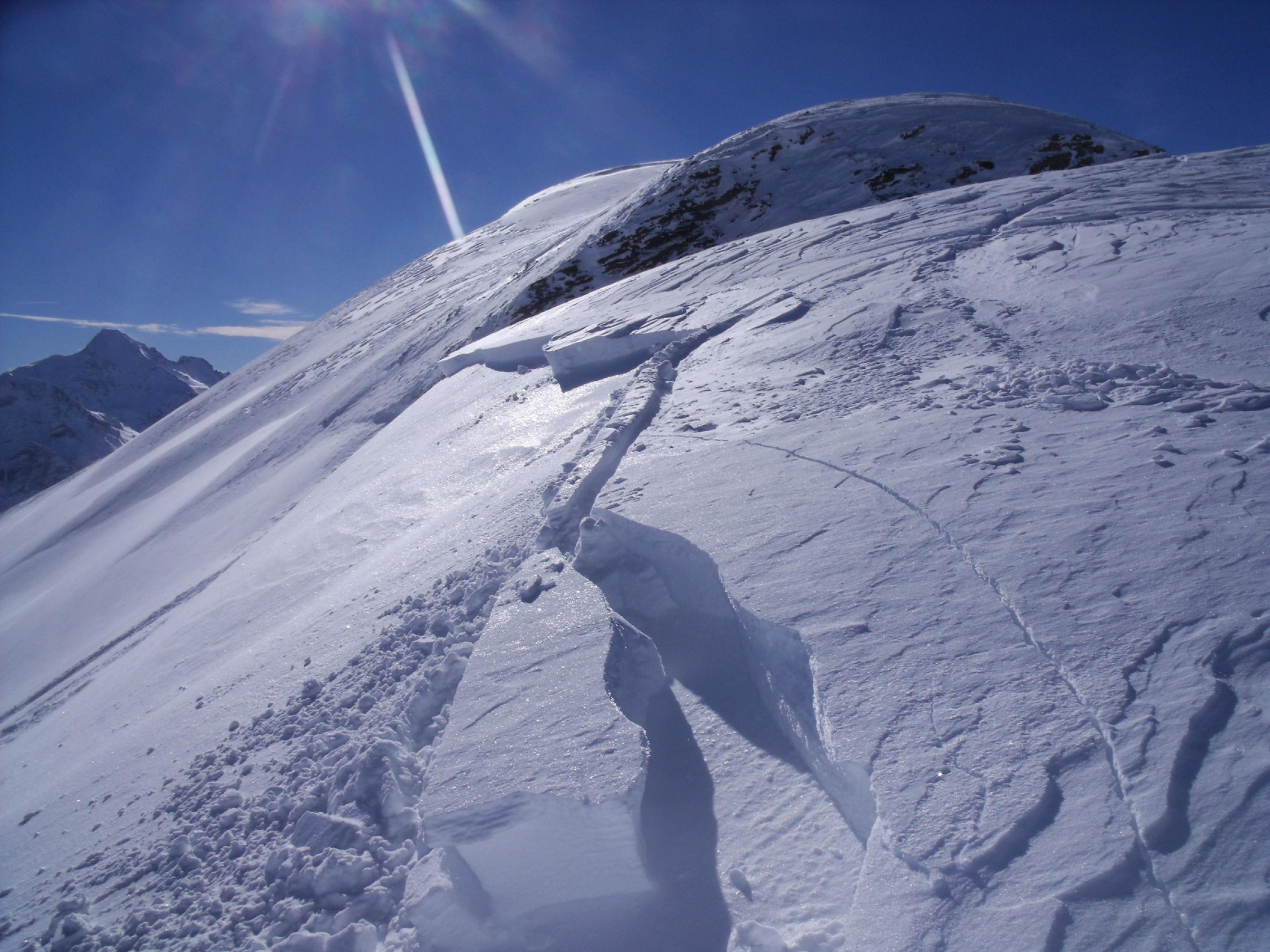 Ich habe bei Sandböda ein grösseres Schneebrett ausgelöst. Unterhalb des Gipfelgrates (Höhe 2850) hatte es nochmals ein Schneebrett.