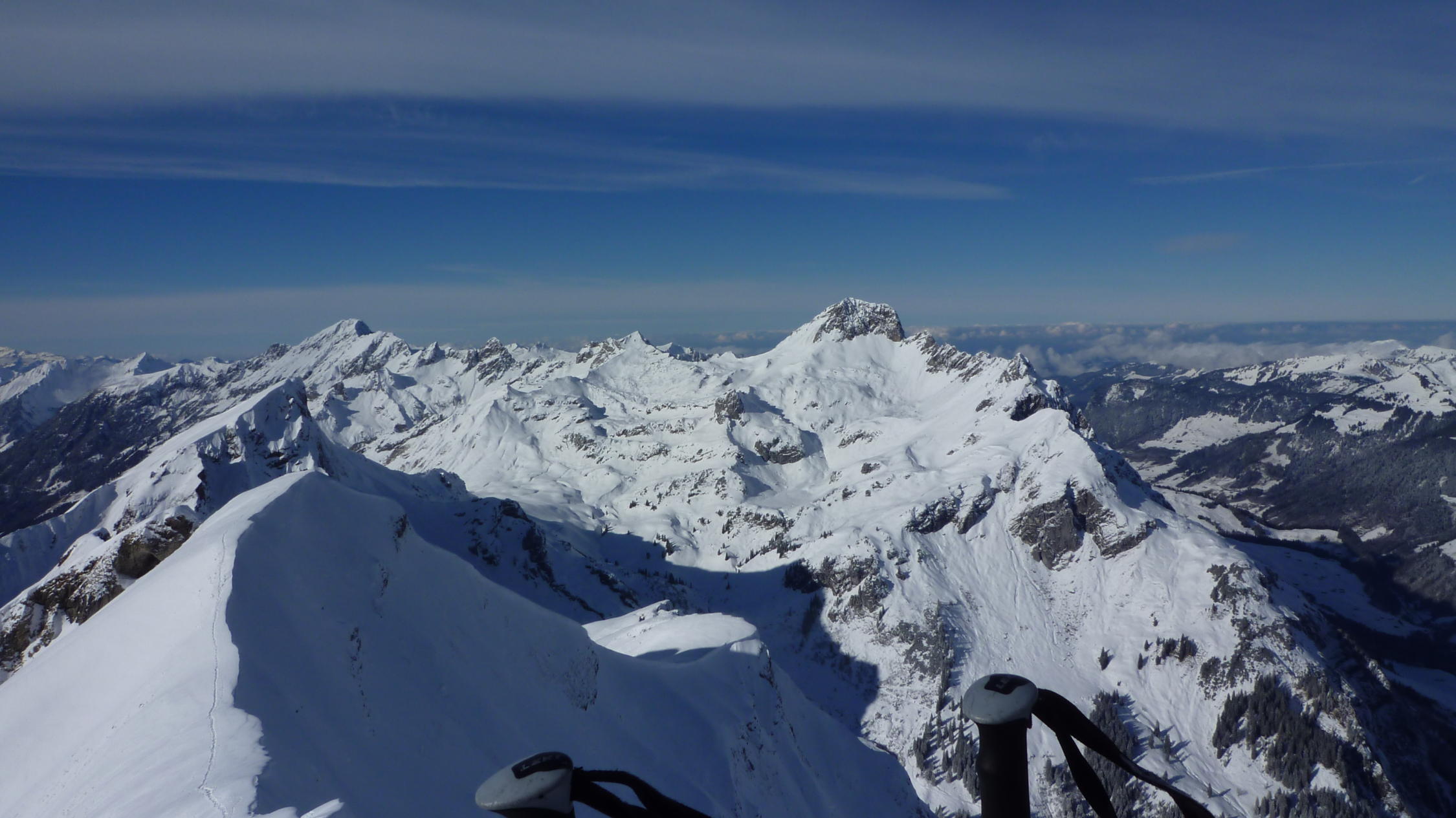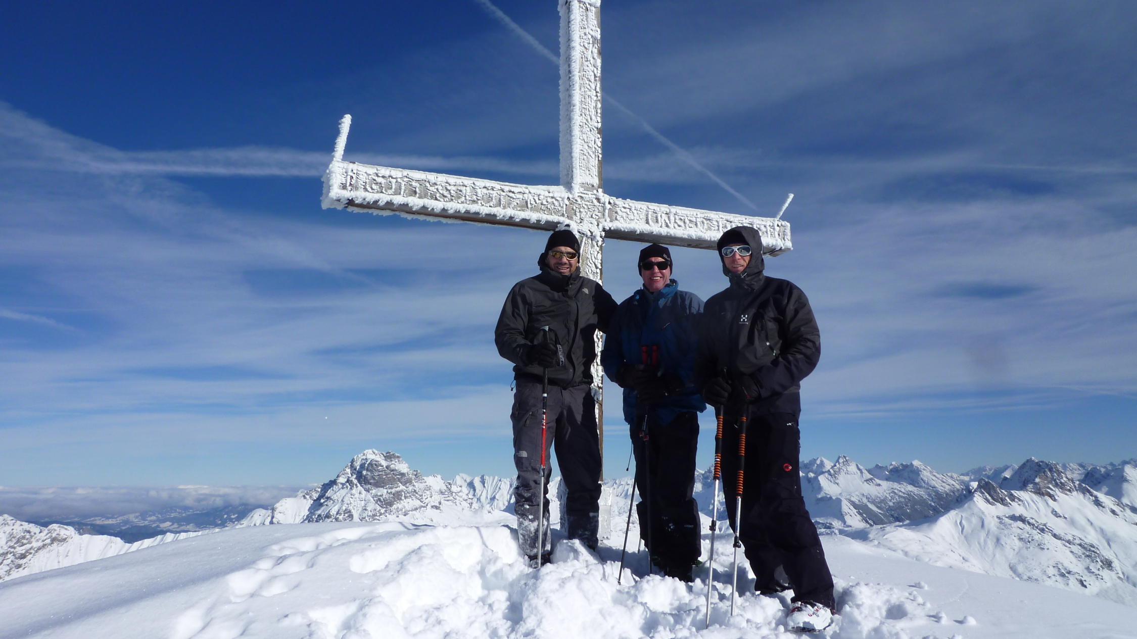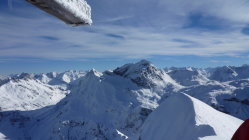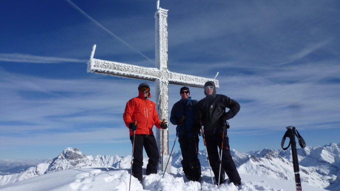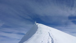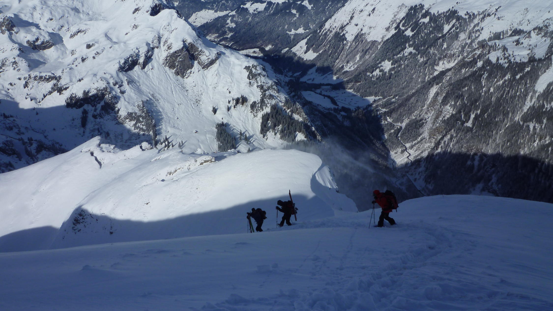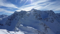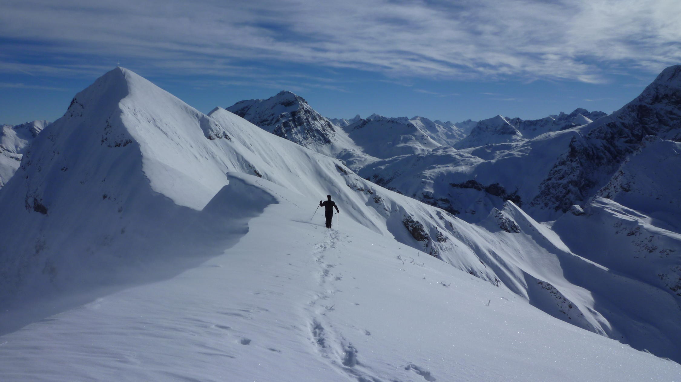 Auf dem Forstweg im Wald für den Aufstieg genug, für die Abfahrt im unteren Bereich zu wenig Schnee.Ab der Baumgrenze 20-30 cm bester Pulverschnee.