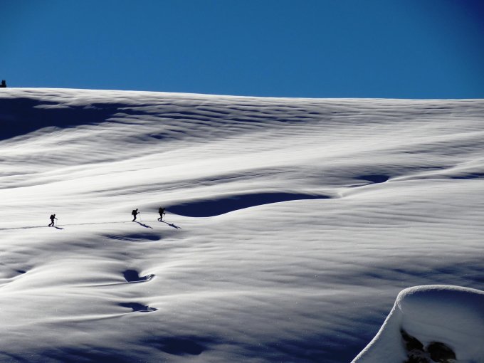 Der ursprüngliche Pulverschnee ist im Laufe des Tages ein wenig feuchter geworden und hat somit an Leichtigkeit verloren. Die steileren Hänge am Puur und am Stand waren sicher besser zu befahren als diejenigen vom flachen Niderhorn.
