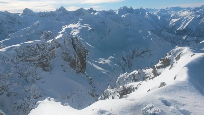 Zum Großen Wilden trotz wenig Schnee hervorragende Bedingungen. Auf dem Teerweg Richtung Pointhütte gerade so genug Schnee, hinter der Pointhütte dann ausreichende Schneelage (mit Unterlage). Man kommt gut zu Fuß ohne Steigeisen durch die Rinne in die Gamswanne, anschließend kann man über die direkte Route mit Ski bis zum Gipfel aufsteigen, die sonst leichtere Variante über den Nordostrücken hat noch nicht genug Schnee. Abfahrt ein Pulvertraum. Ich bin noch zum Schneck Wintergipfel, habe den Hauptgipfel probiert, das war dann aber doch zu krass, leider hat das soviel Zeit gekostet, dass ich den Bus um 16Uhr10 nicht mehr geschafft habe.
