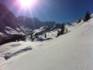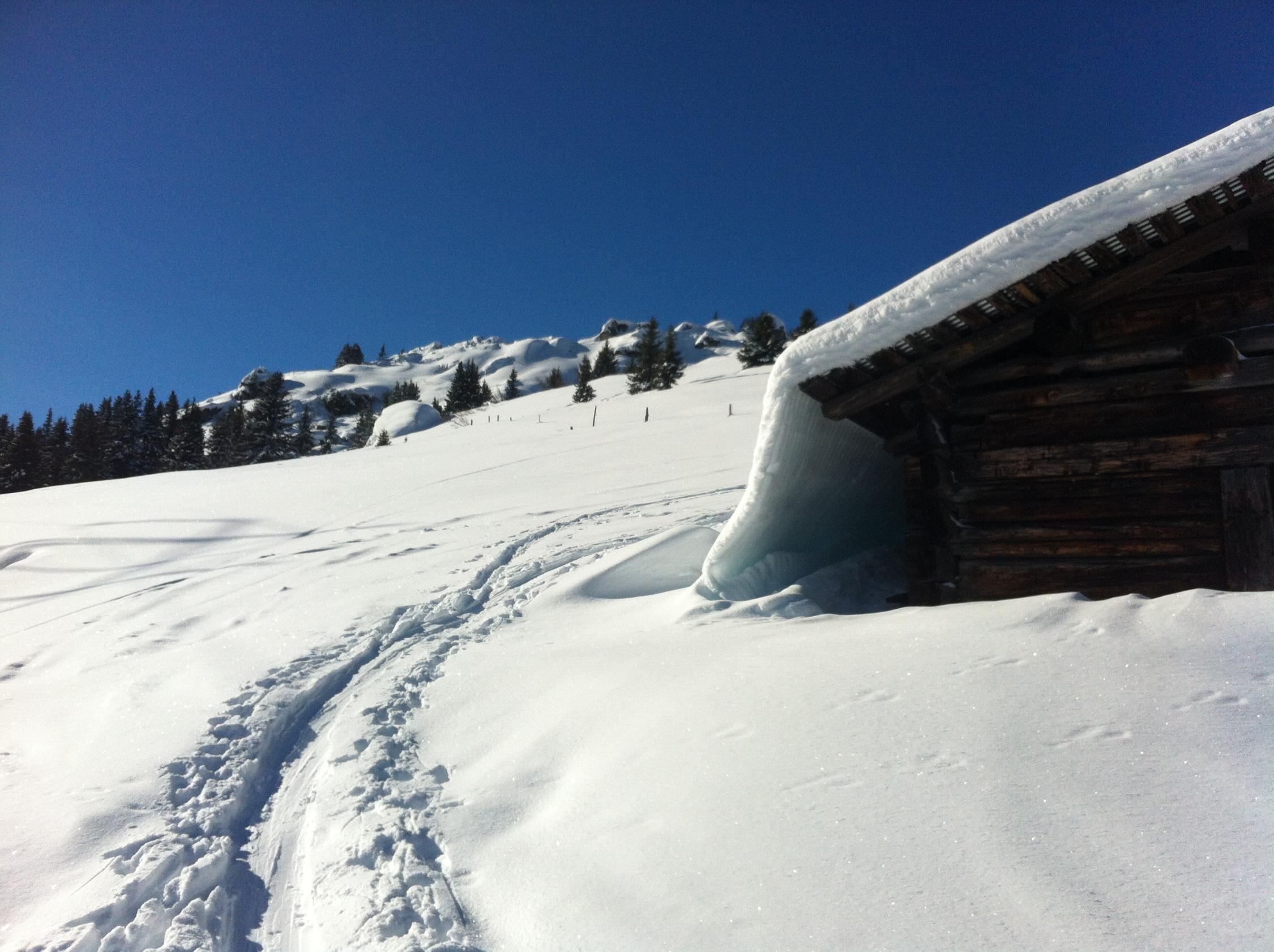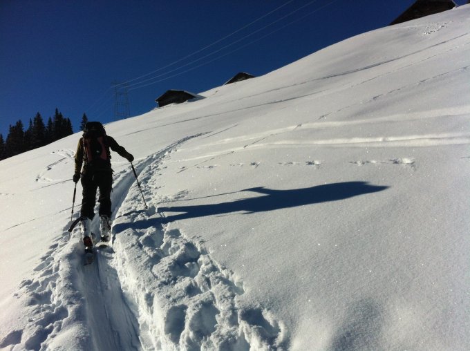 Es liegt genügend Schnee im Safiental. Die Hänge haben zur Zeit eine schöne Pulverschneedecke auf tragendem Untergrund. Im oberen Bereich des Aufstiegs ist die Schneedecke vom Wind gezeichnet. Der Gipfelrücken ist total abgeblasen und die Abfahrt auf den ersten ca. 200 hm hat dem Skibelag nicht besonders gut getan.