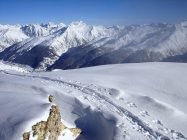 Im Osthang des Gross Chastelhorn ältere Schneerutsche aus den Felsen