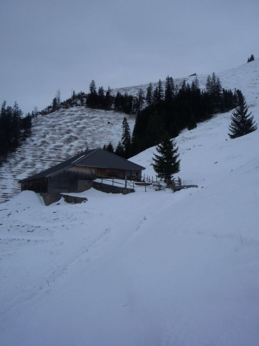 Bei dicker Schneelage könnte ev. durch den ganzen Graben abgefahren werden, aber auch so sind rund 1000 Höhenmeter Hüftschwung gefragt - und dies notabene in einem Voralpencouloir....