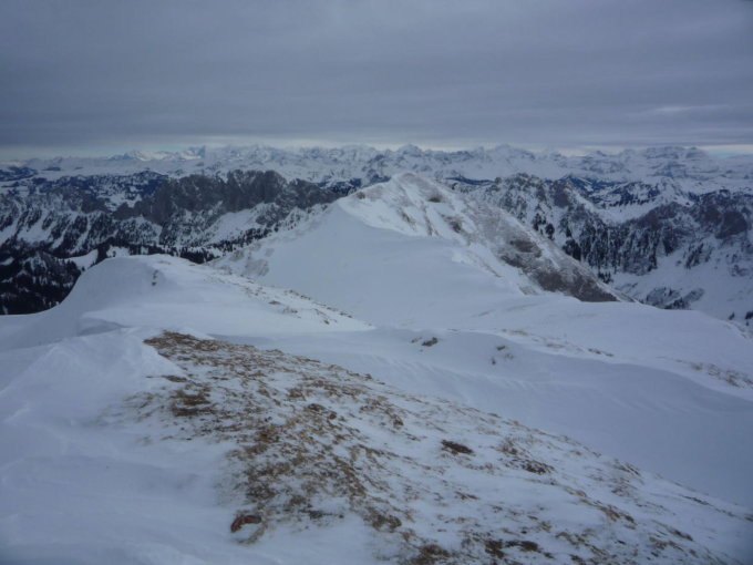 Bewölkt mit föhnigen Aufhellungen. Ca. 10-20cm Pulver auf unregelmässiger und nur z.T. durchgefrorener Unterlage. SW-Grat verblasen. Oberes W-Couloir hart und griffig, Steilstufe gefroren und hart (kurz abgerutscht und -geschritten), unteres W-Couloir zuerst einbrechend, dann weich und schwer.