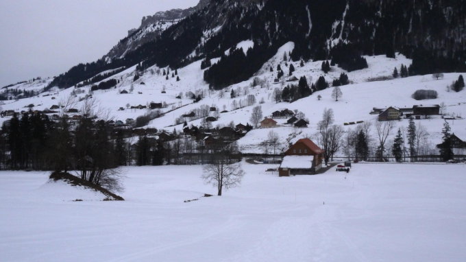 Abfahrt nach Hinter Falkenbach teils noch mit Pulver.
