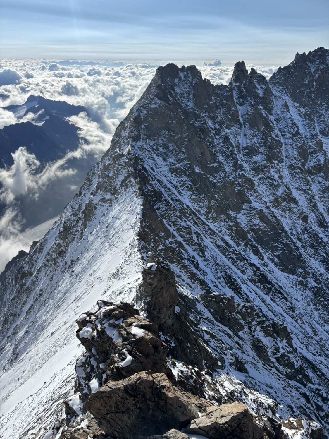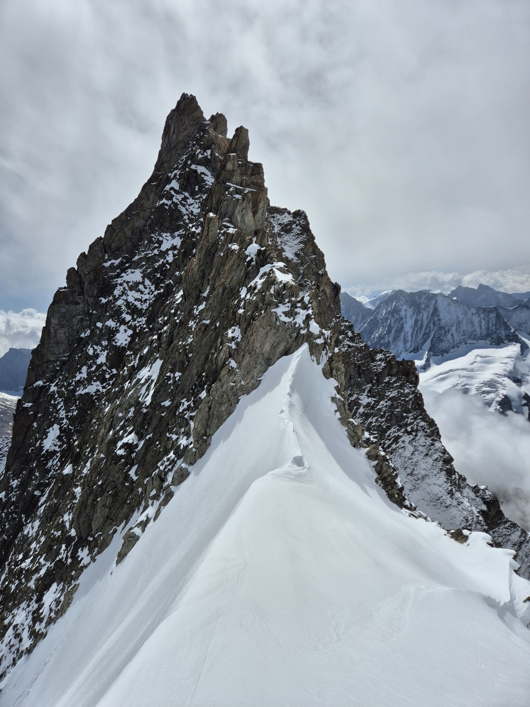 Verhältnisse vom Schreckhorn bis zum Lauteraarhorn gut, der Abstieg über den Schraubengang ist bei Neuschnee (je nach Exposition zwischen 5 und 20 cm) nicht einfach zu finden. Ebenfalls der weitere Abstieg über den Grat bis zum Gletscher ist weitaus anspruchsvoller als normalerweise, da der "Weg" weder sichtbar, noch gut zu begehen ist.
