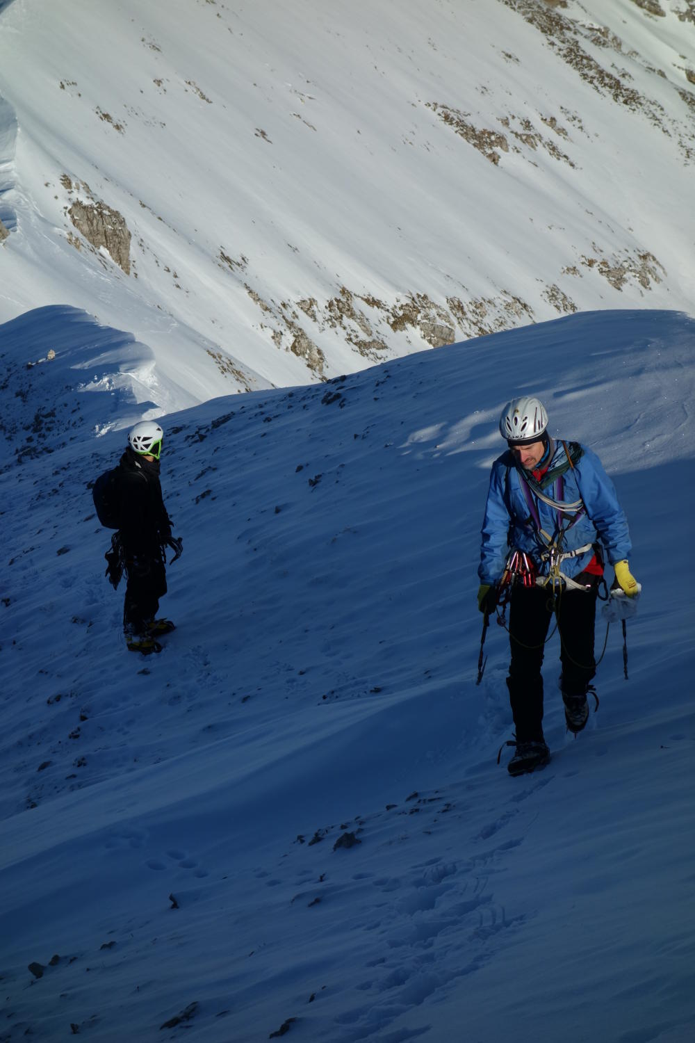 Sicherheitshinweis: Ernste Route, bitte nicht von den moderaten Schwierigkeitsbewertungen täuschen lassen und bitte nur alpine Routiniers.