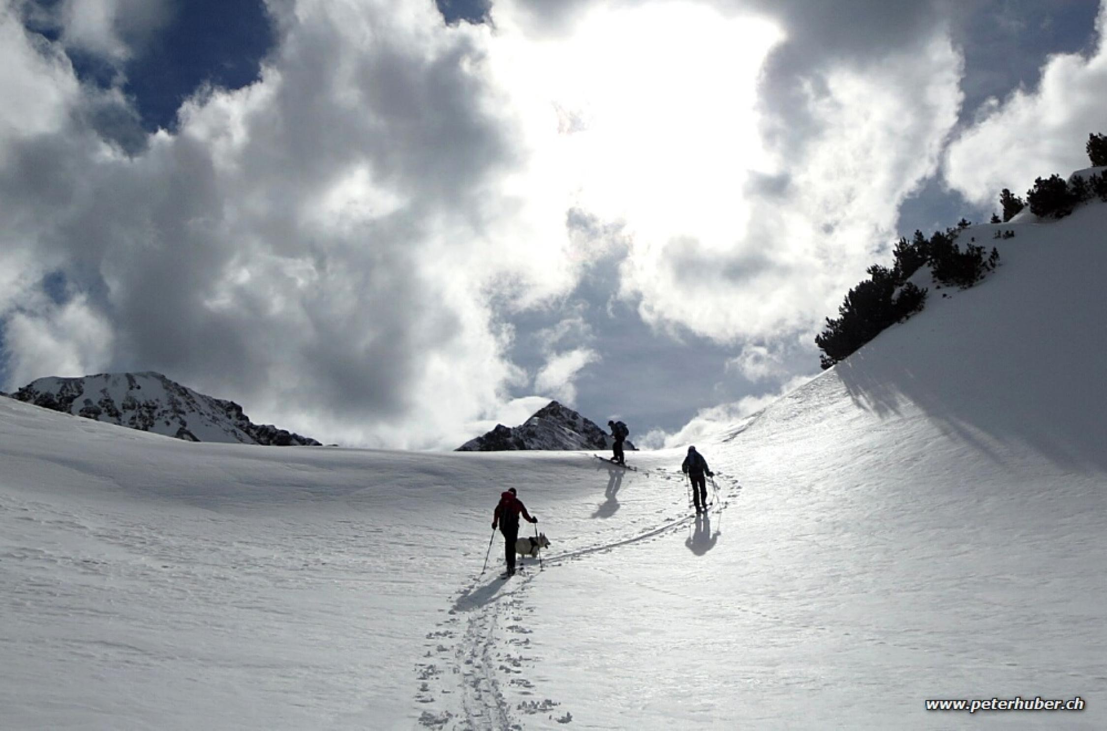 Insgesamt lange Tour mit langer Horizontalstrecke, landschaftlich sehr schön, Abfahrtsgenuss gibt's v.a. im Gipfelhang.