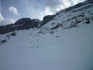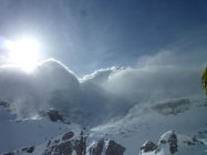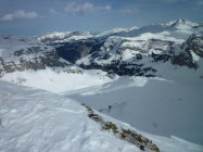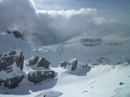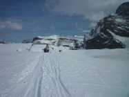 In der Abfahrt sehr sehr feuchter, locker Schnee, gepaart mit tragenden Firnpassagen und hier und da ein wenig Bruchharsch.