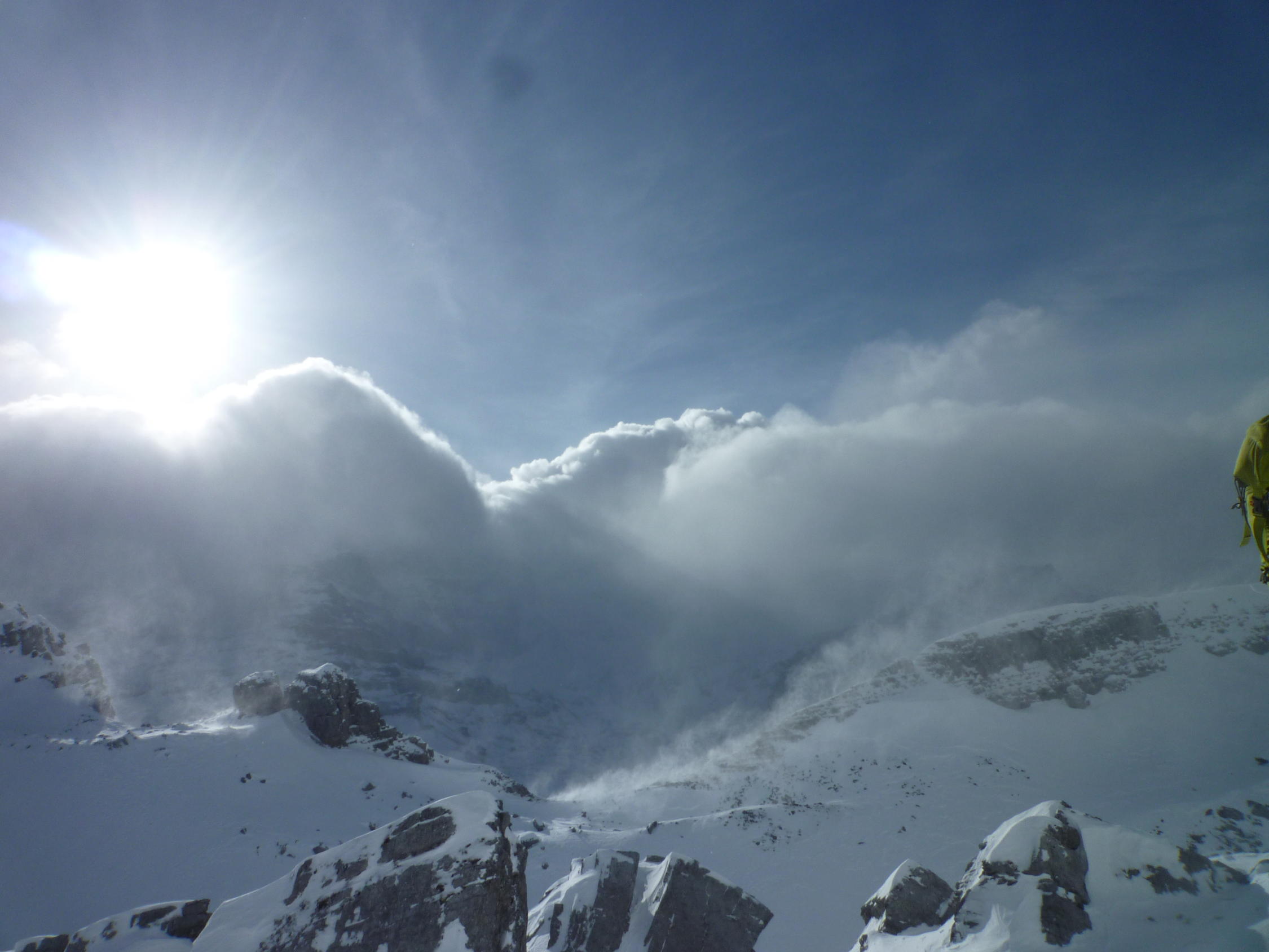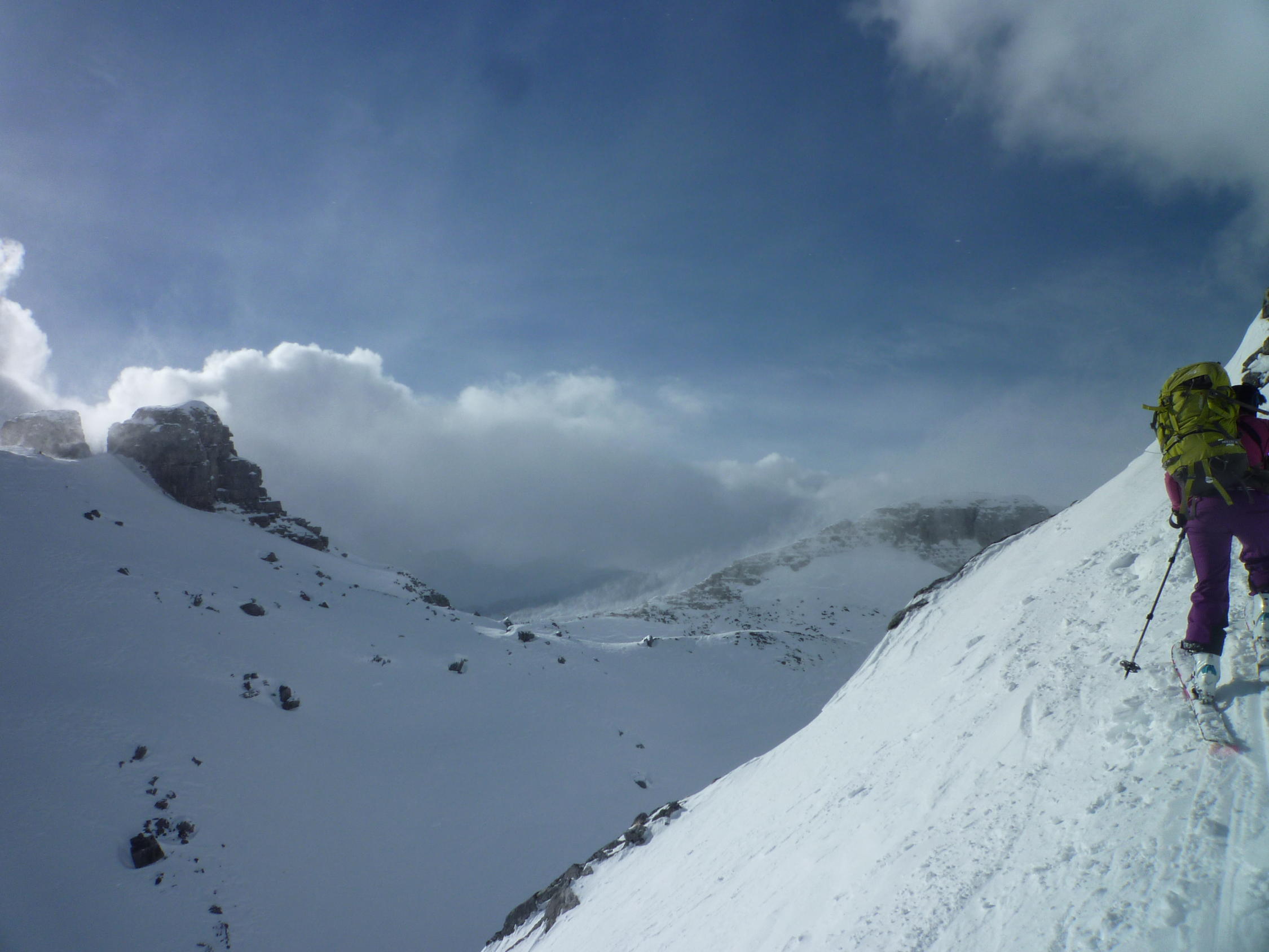 Gute Spur und ausreichend Schnee. Am Gipfel nur mässig Wind, im Vergleich zu den vorgelagerten Bergen, da hat es geblasen wie Hulle.