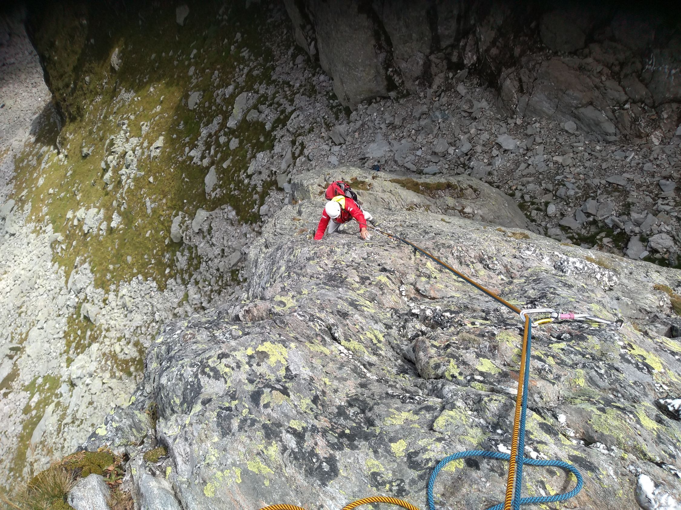 Beim Abstieg haben wir an der ersten Abseilstelle 1 x 30m und an der zweiten Abseilstelle 1 x 60m (mit Doppelseil) direkt in die Scharte abgeseilt.