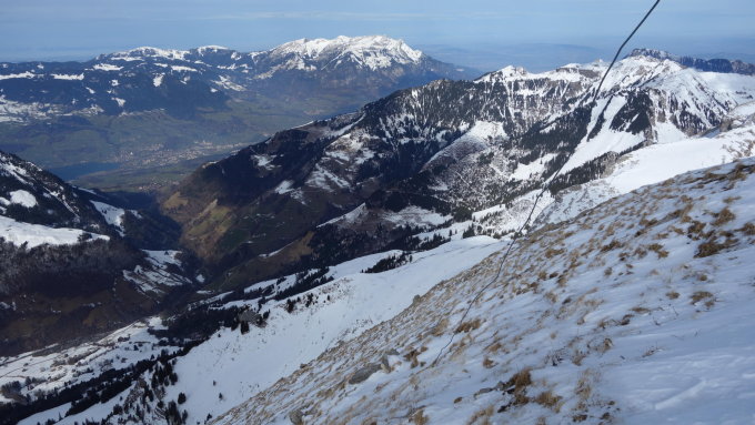 Es ist Februar! Doch den Schneeverhältnissen nach könnte es Ende Oktober sein. Mit Müh und Not kann man aber bis Melchtal abfahren. Die Schneedecke ist aber sehr dünn und die Schneequalität lässt zu wünschen übrig. Ein Hang oberhalb Stock war schön zu fahren. Gipfelhang abgeblasen. Skidepot. Der Gipfel war teilweise vereist und heickel ohne Steigeisen. Am Gipfel starker Föhnsturm, ansonsten war es ziemlich ruhig. Extra von Grindelwald angereist, doch in der Zentralschweiz liegt ja noch viel weniger Schnee als im Berner Oberland. Dieses Jahr ist wohl die Alpensüdseite die Gewinnerin.