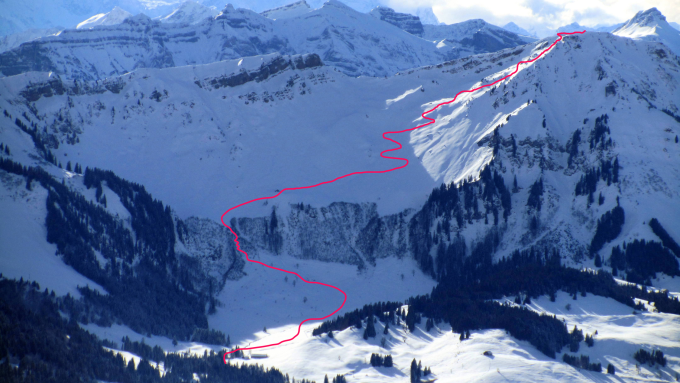 Vom Parkplatz Schetteregg ostwärts ausholend über die Obere Falzalpe, Bühlenalpe in südwestlicher Richtung zum Gipfel