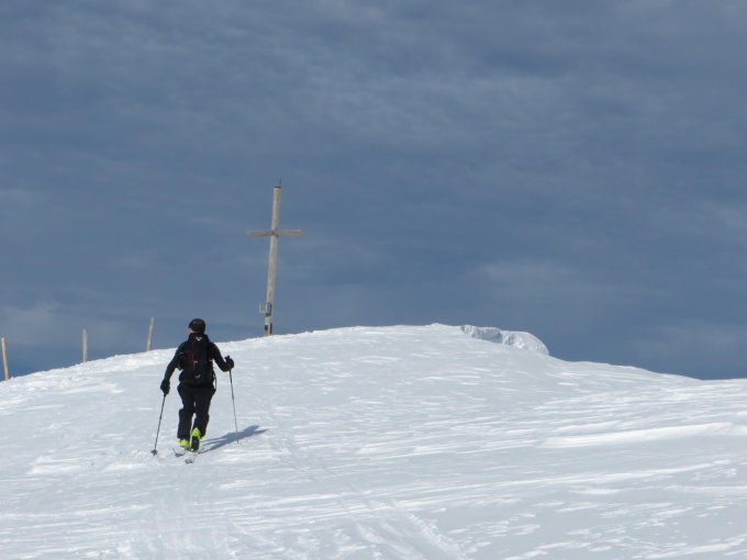 Alle Variationen vorgefunden;im Aufstieg hart und pulvrig.Südseitig bereits sulzig..Abfahrt Märe verfahren,windgepresster Pulver und Bruchharscht.