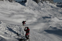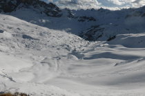 Pulver, gegen Mittag an Südhängen Nassschnee