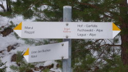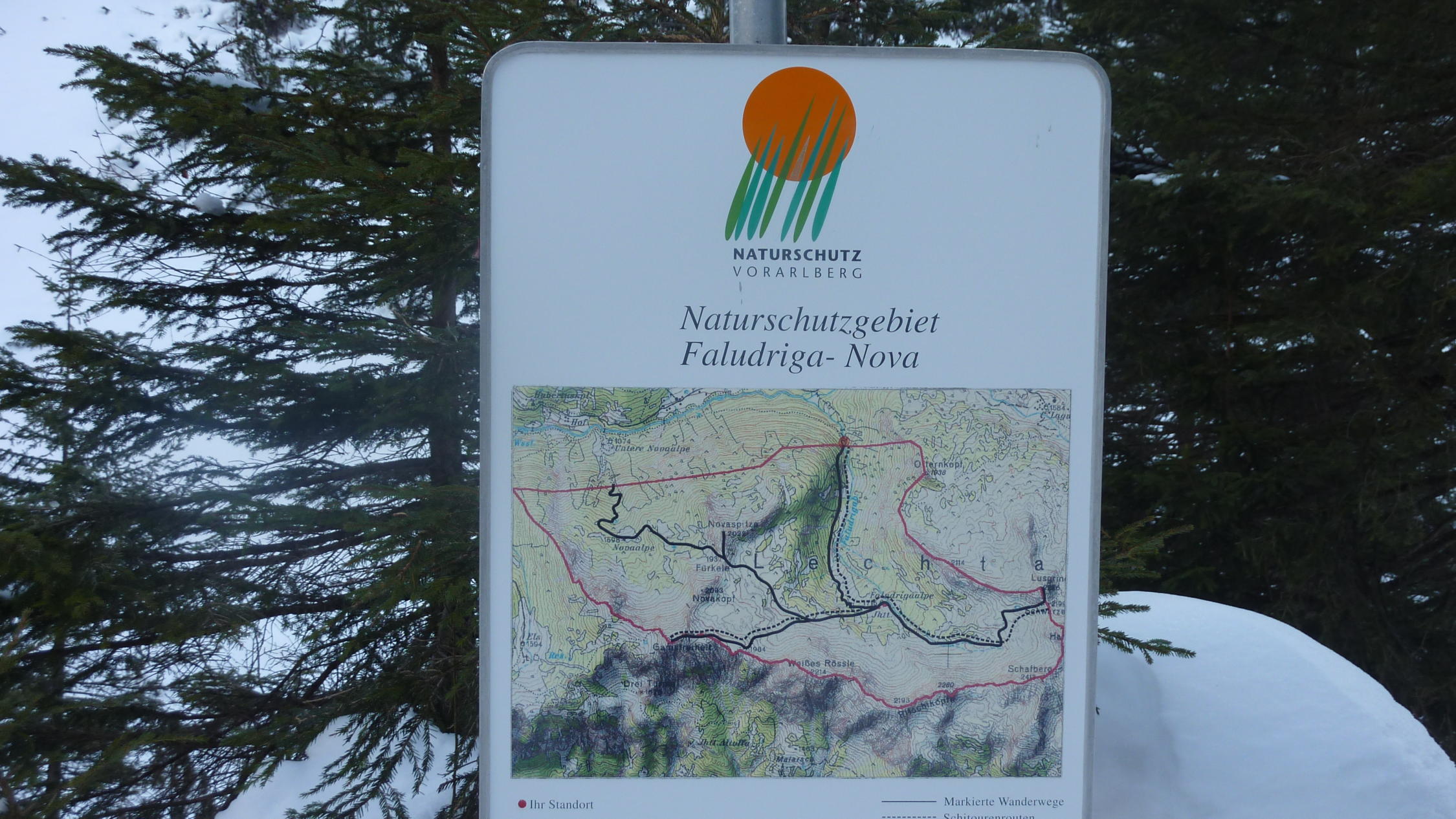 Von Marul ins Faludrigatal zu den Gipfeln Lusgrind, Weisses Rössle und Gamsfreiheit Start von Marul-Engel 1020 m. Nach 35' Abzweigung Fuchswald nach rechts ins Faludrigatal. Dem Weg entlang zur Faludrigaalpe 1715 m, weiter dem Talboden folgend zur Schwarzen Furka 2199 m. Nun links zum Lusgrind 2286 m. Eventuell Skidepot und wenige Meter zum Gipfel.