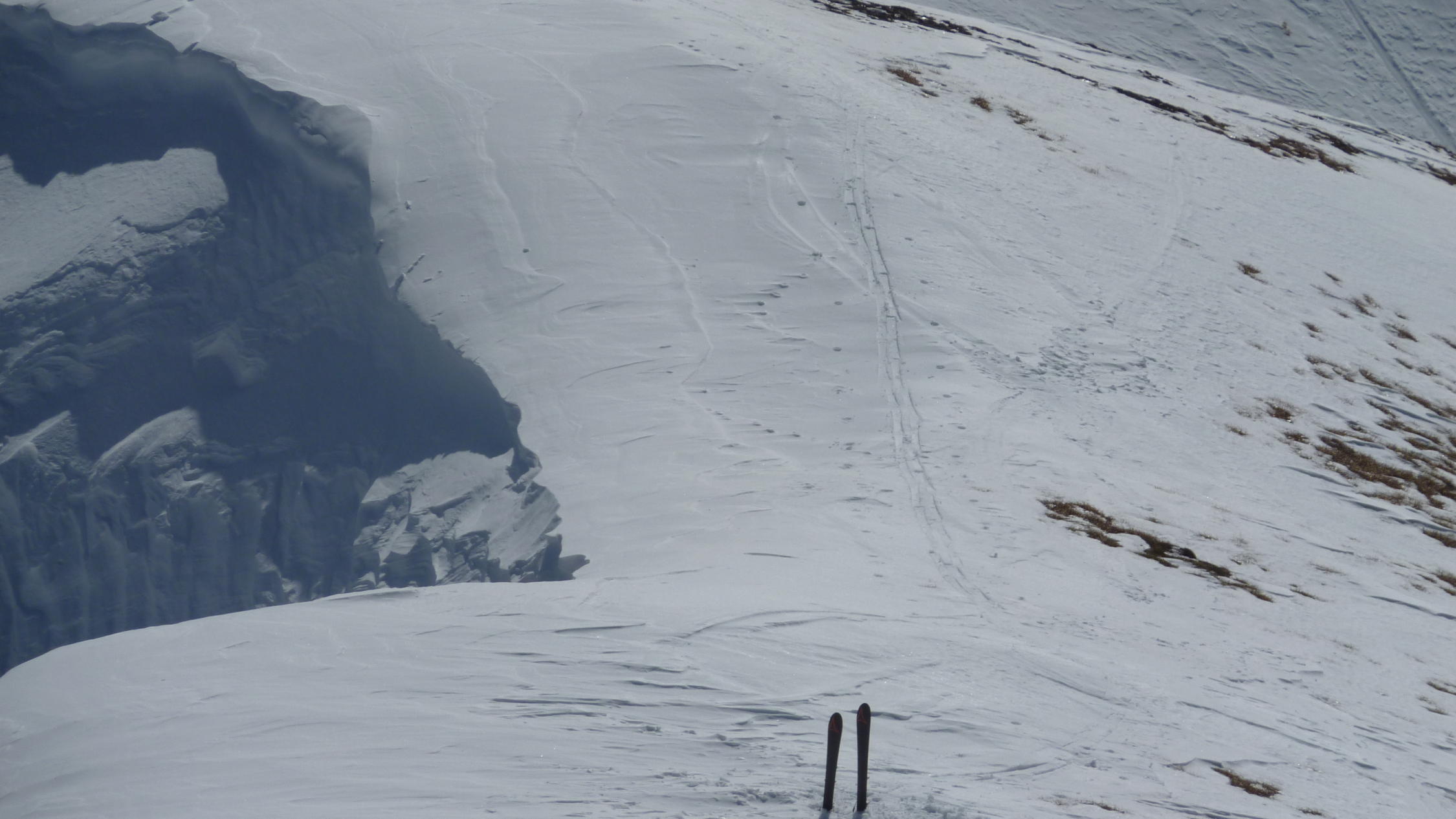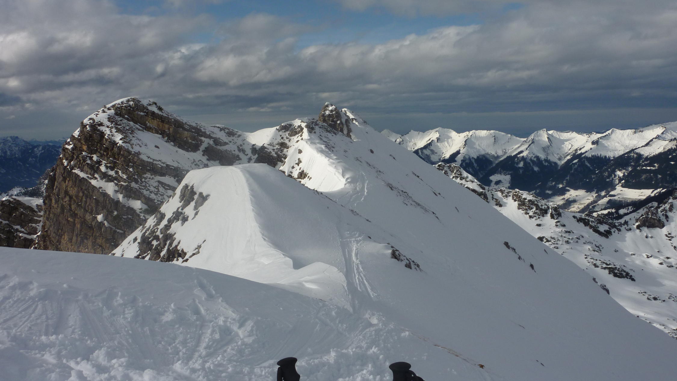 Ausser im abgeblasenen Gipfelbereich des Lusgrind genügend Schnee.