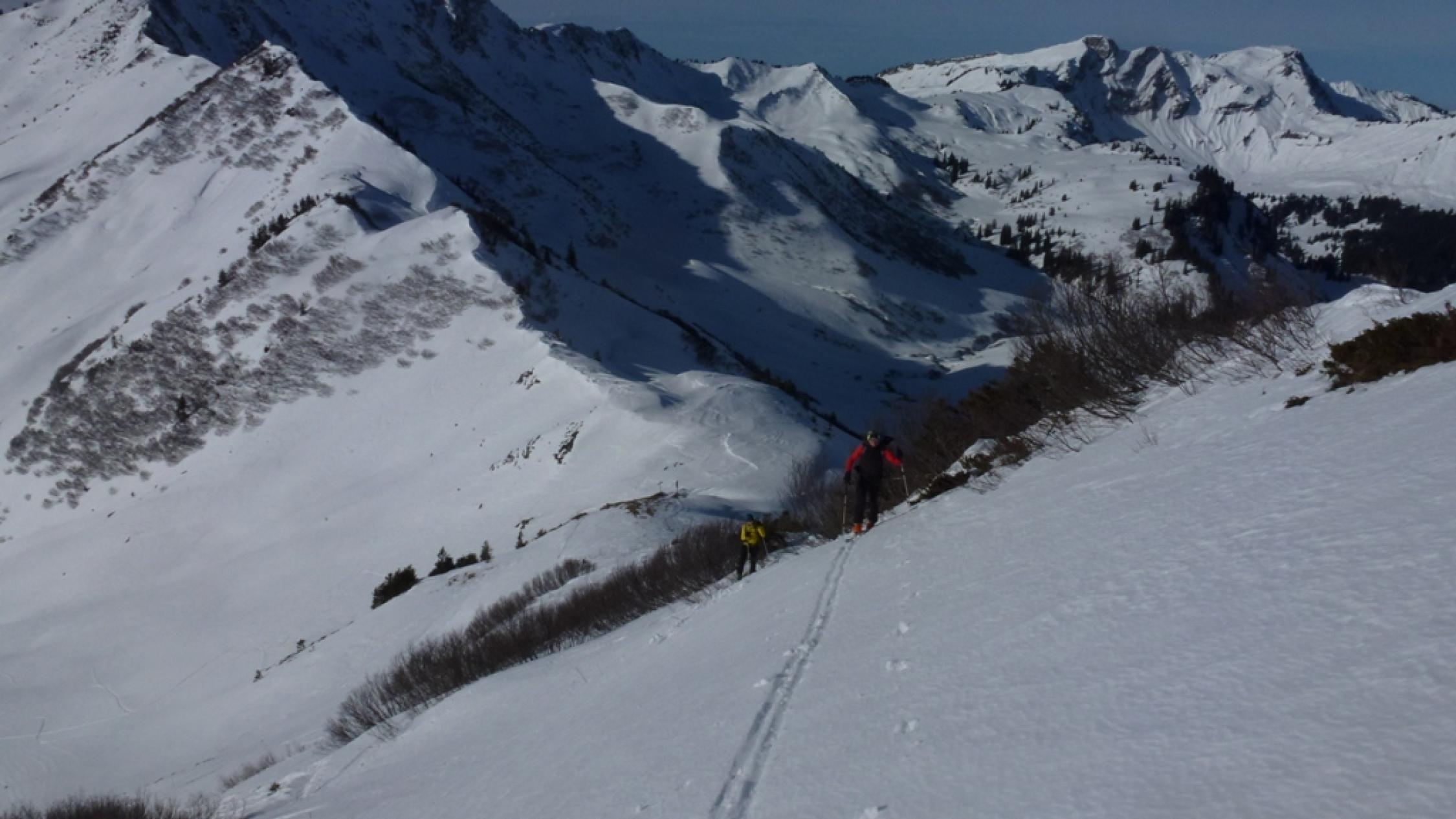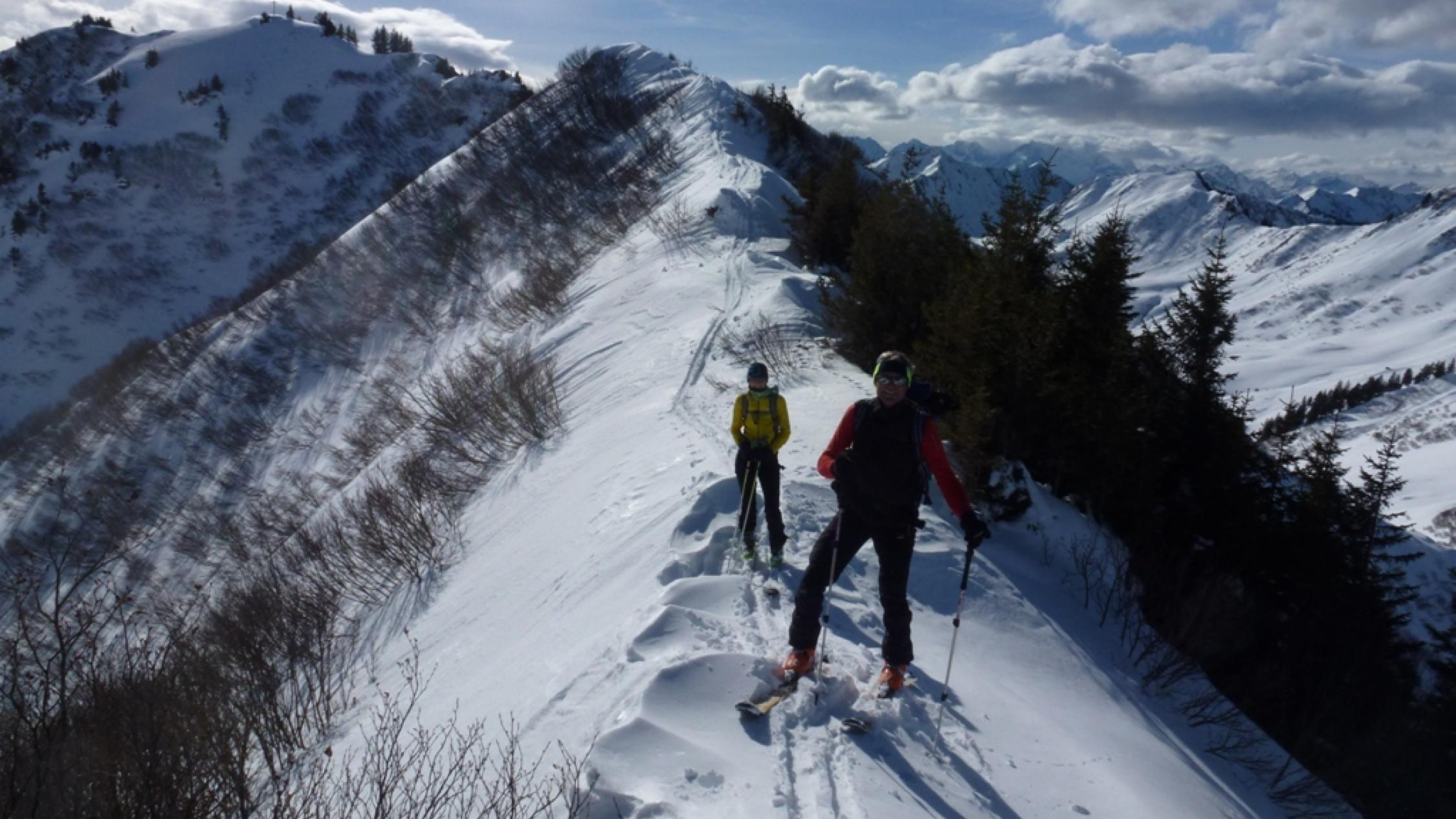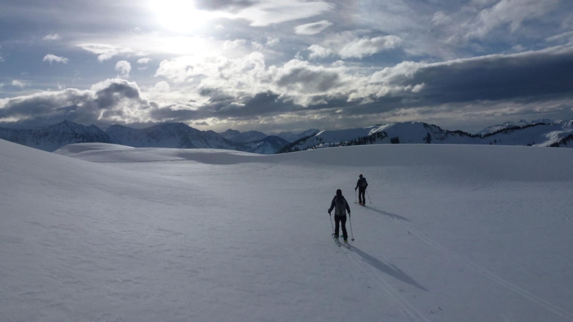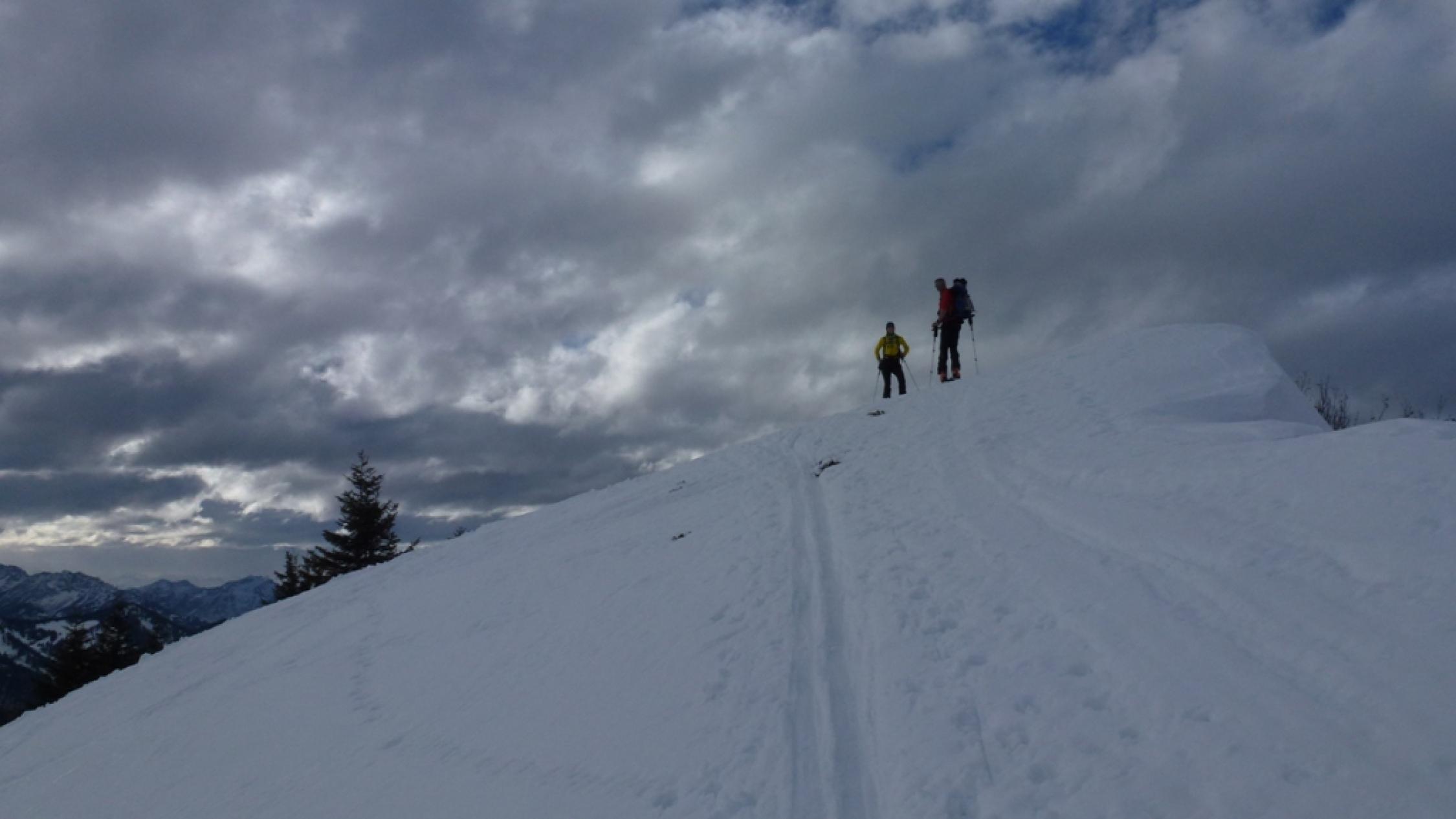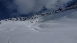 Die ausgeprägte Föhnströhmung mit den milden Temperaturen macht dem Schnee zu schaffen. Die Abfahrtsfreuden waren bis auf jene kurzen vom Furkakopf und Portlahorn sehr verhalten. Der weitgehend vorherrschende 'Stop- und Go-Schnee' gab einem etliche Male das Gefühl, dass es einen aus den Schischuhen zieht. Auf dem scharfen Grat zum Portlahorn musste man achten, dass es einen nicht hinunterblies. Ab dem Portlahorn beruhigte sich der Wind und ein faszinierendes Wolken- und Lichtspiel verzauberte die schöne Gebirgslandschaft.