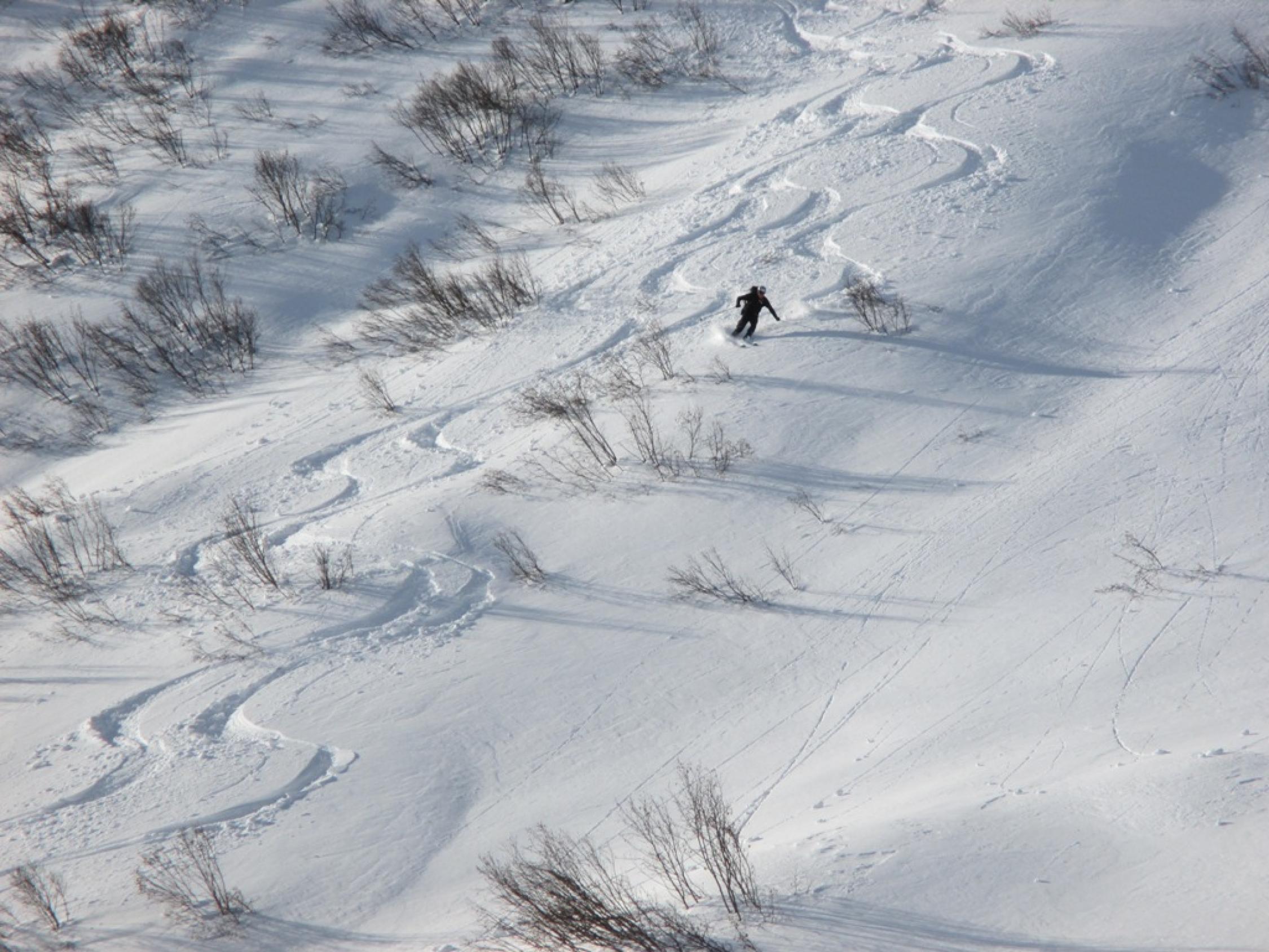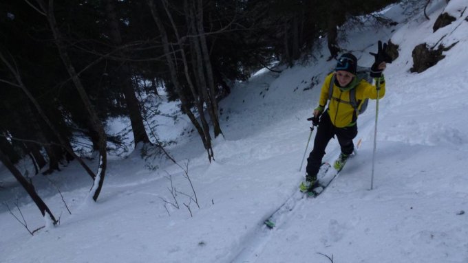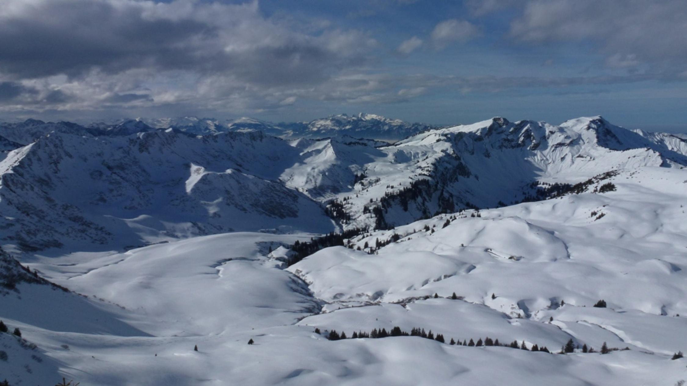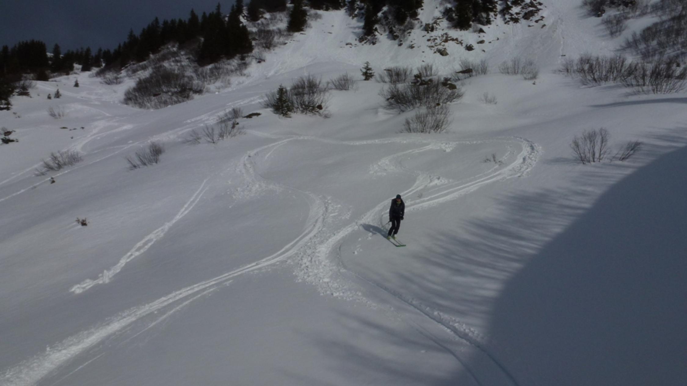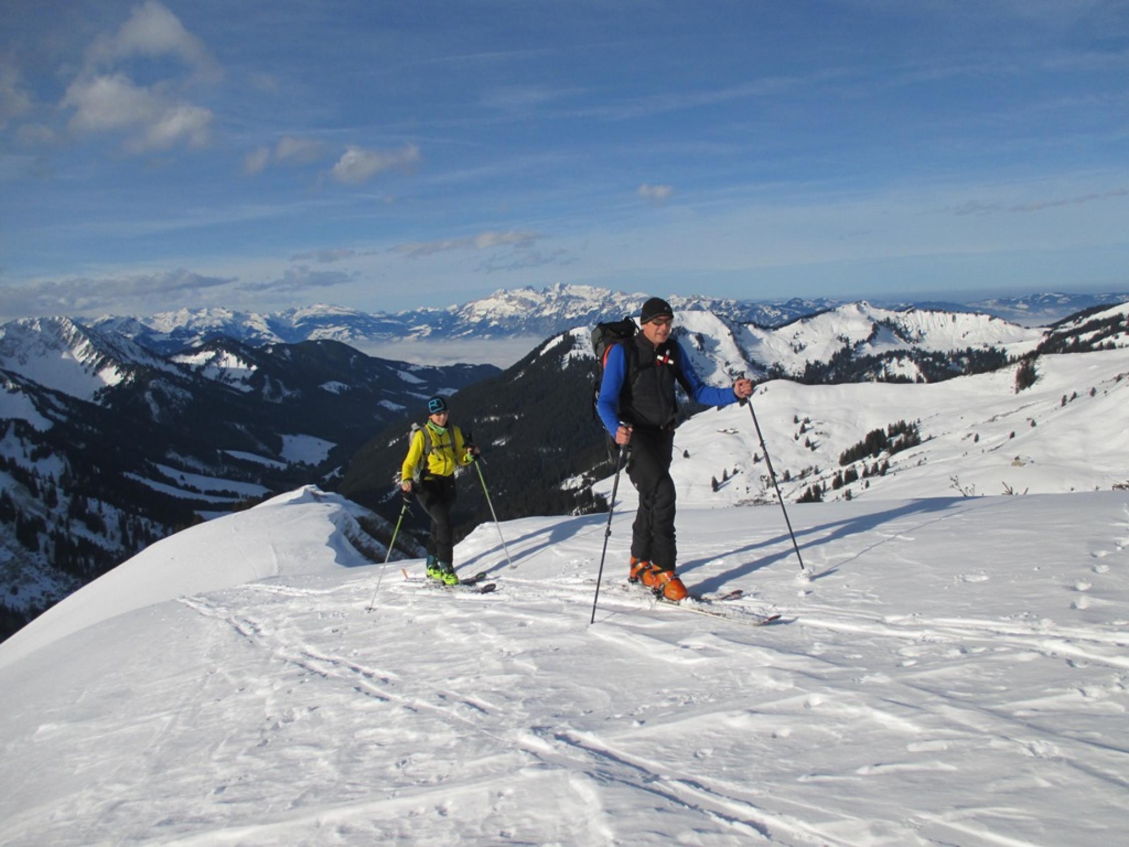 Die ausgeprägte Föhnströhmung mit den milden Temperaturen macht dem Schnee zu schaffen. Die Abfahrtsfreuden waren bis auf jene kurzen vom Furkakopf und Portlahorn sehr verhalten. Der weitgehend vorherrschende 'Stop- und Go-Schnee' gab einem etliche Male das Gefühl, dass es einen aus den Schischuhen zieht. Auf dem scharfen Grat zum Portlahorn musste man achten, dass es einen nicht hinunterblies. Ab dem Portlahorn beruhigte sich der Wind und ein faszinierendes Wolken- und Lichtspiel verzauberte die schöne Gebirgslandschaft.