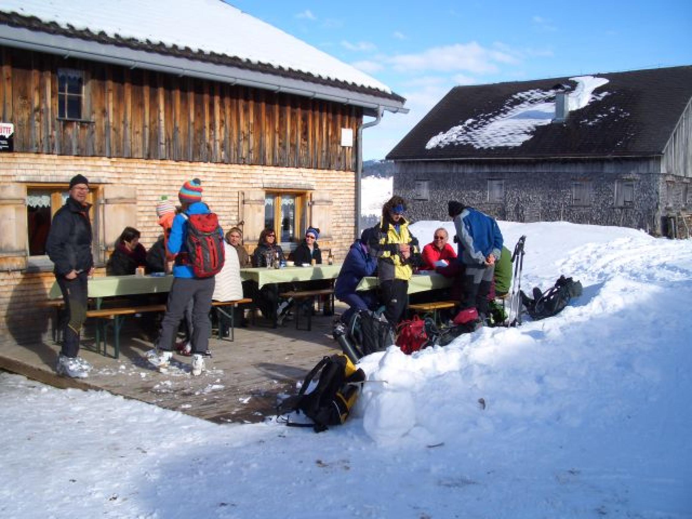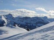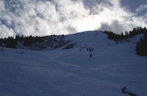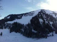 Gute Schneelage ab Parkplatz. Abfahrt im orogr. rechten Teil der Nord- flanke in schwerem, kompakten Pulver, weiter unten lockerer. Im Mittelteil einige überschneite eingelagerte Eisbollen von älteren Rutschen. Keinerlei Steinkontakt, auch der kurze Baumslalom in die Senke geht problemlos. Rückweg auf der Fahrstrasse mit kurzen Gegenanstiegen und etwas Doppelstockeinsatz.