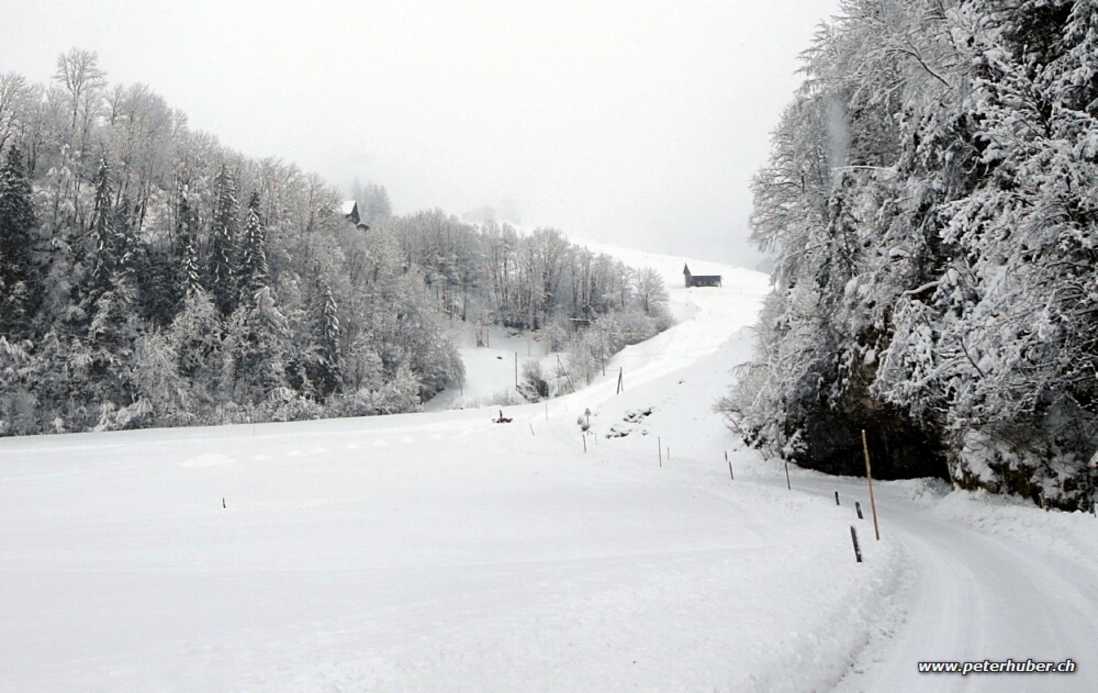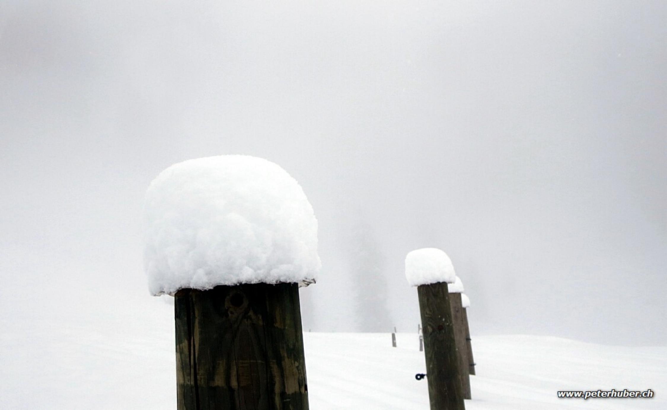 Anfangs leichter Schneefall. Neblig, bei der Abfahrt war die Sicht OK.