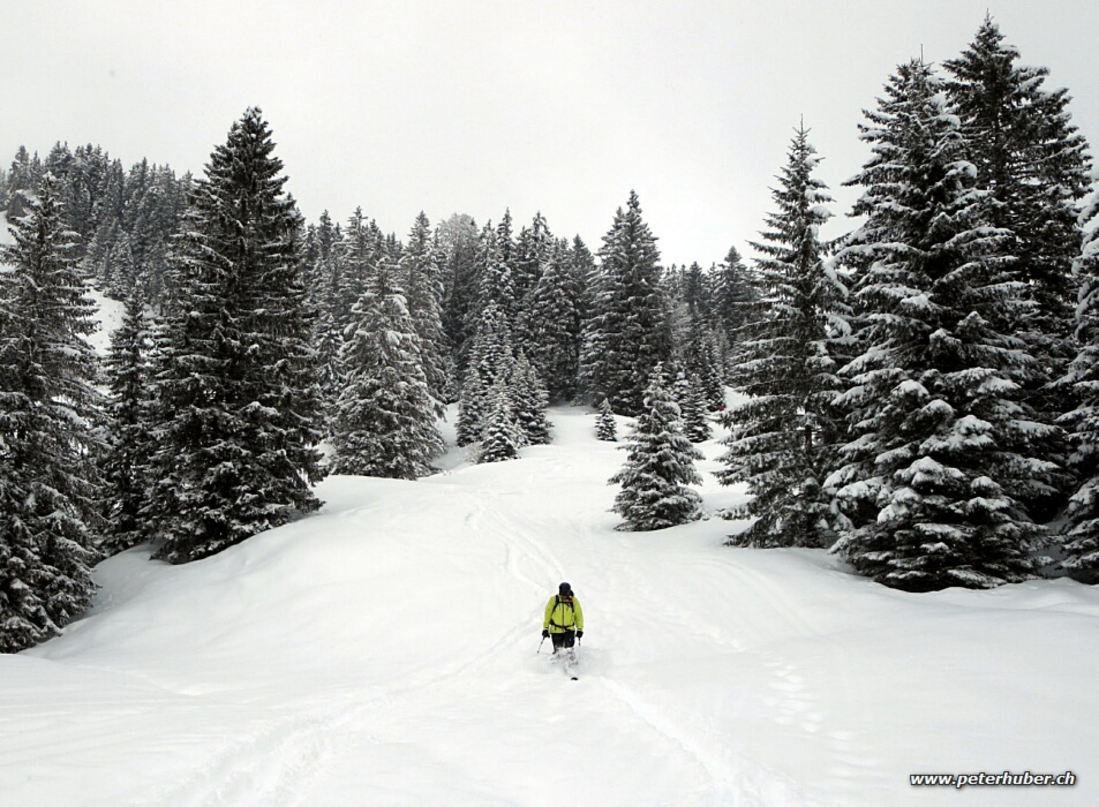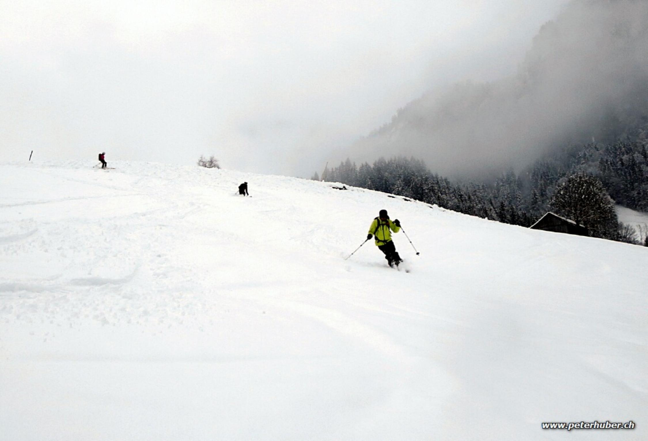 Es hat ca. 20 cm Neuschnee gegeben. Unterhalb 1200 m schon sehr feucht. Bei der Abfahrt bremste der viele Neuschnee sodass wir in den bestehenden Spuren Anlauf holen mussten. Schön, es hat für den Moment genug Schnee - weiterer Nachschub wäre dennoch willkommen