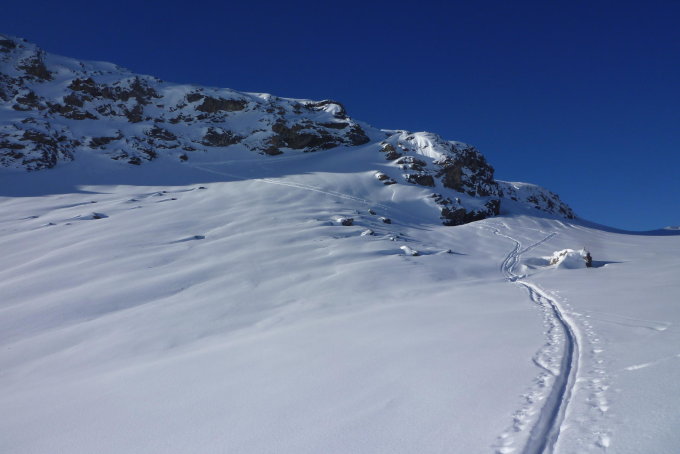 Allerbeste Schneeverhältnisse! Den ganzen Tag Pulver satt und dazu wolkenloser blauer Himmel.