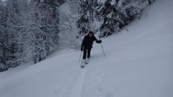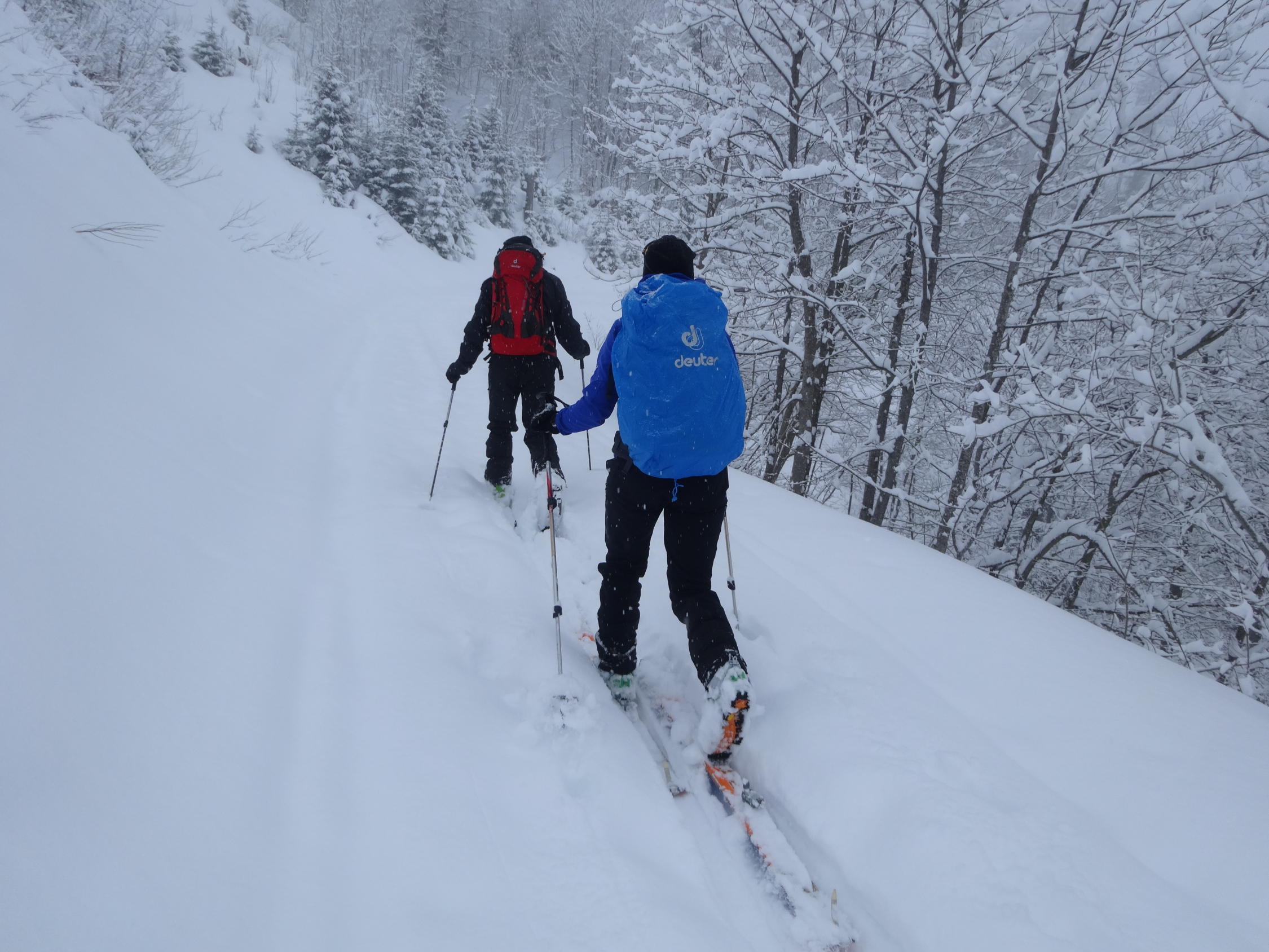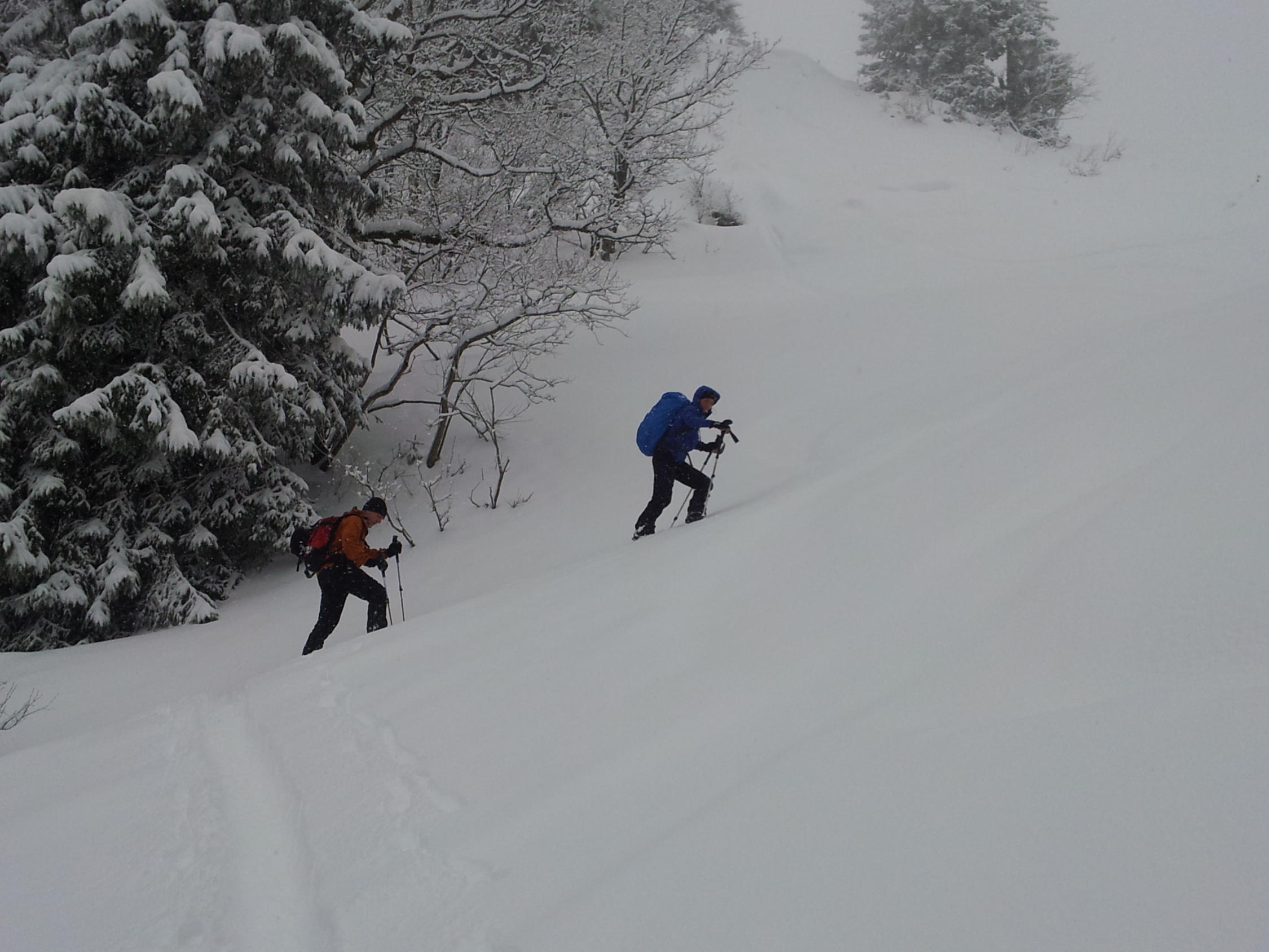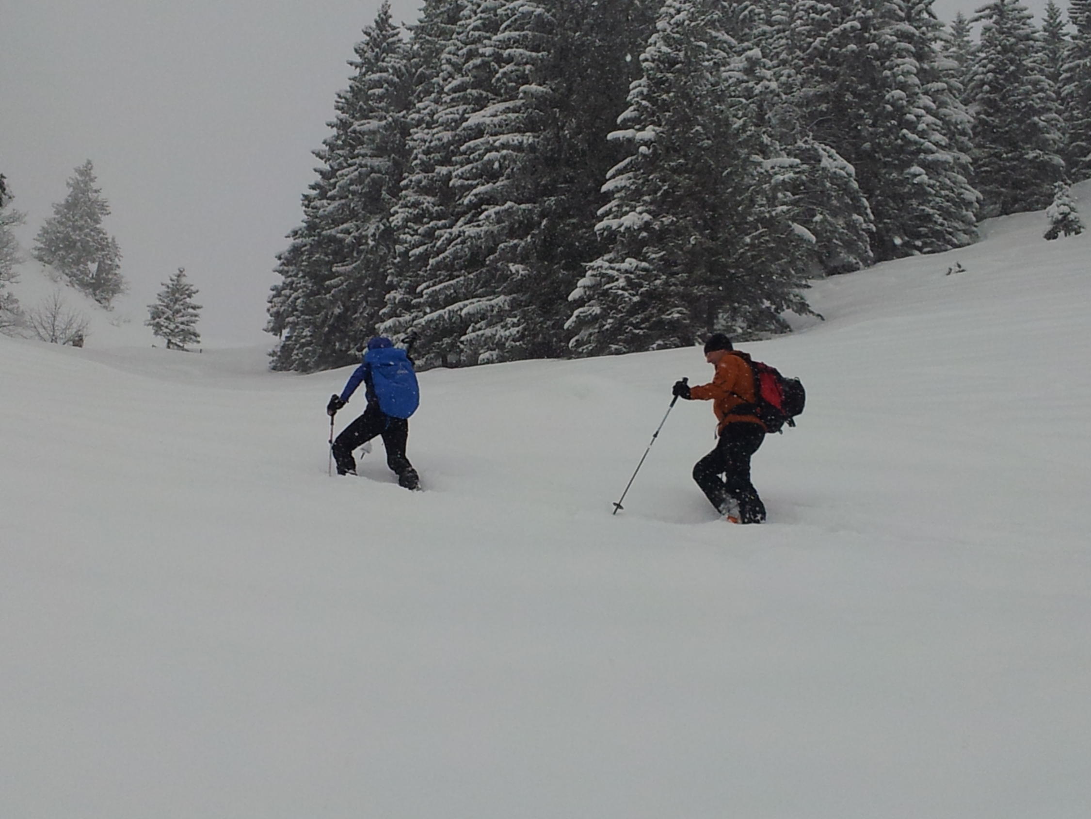 Es hat Neuschnee gegeben ca. 20cm und das ohne Wind. Leichter Schneefall und teils neblig.