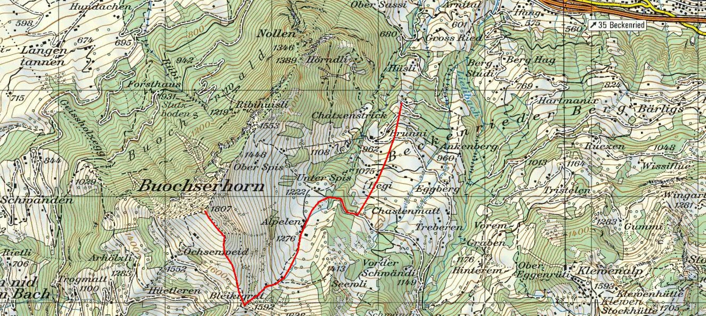 Wir sind bei der Kurve Pt 881m bei Berg Wil gestartet. Ab da hat es genügend Schnee...
