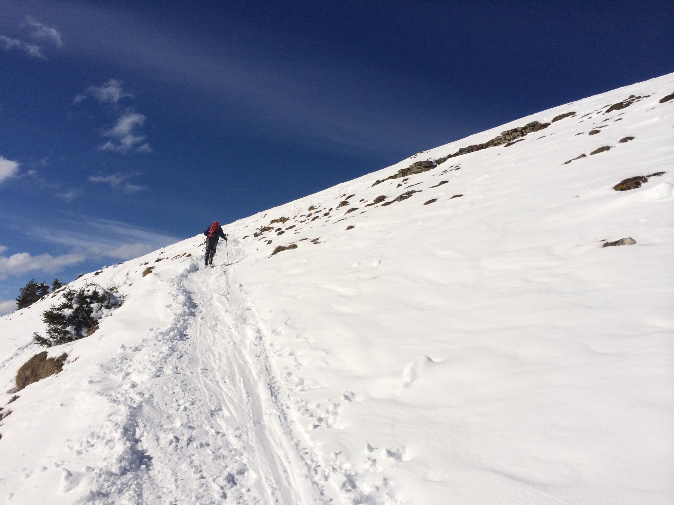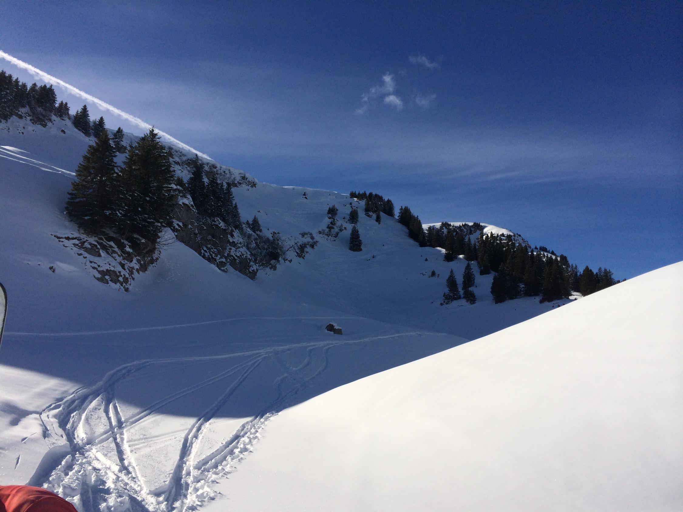 15-20 cm Pulverauflage auf Altschnee, unten raus Pappschnee