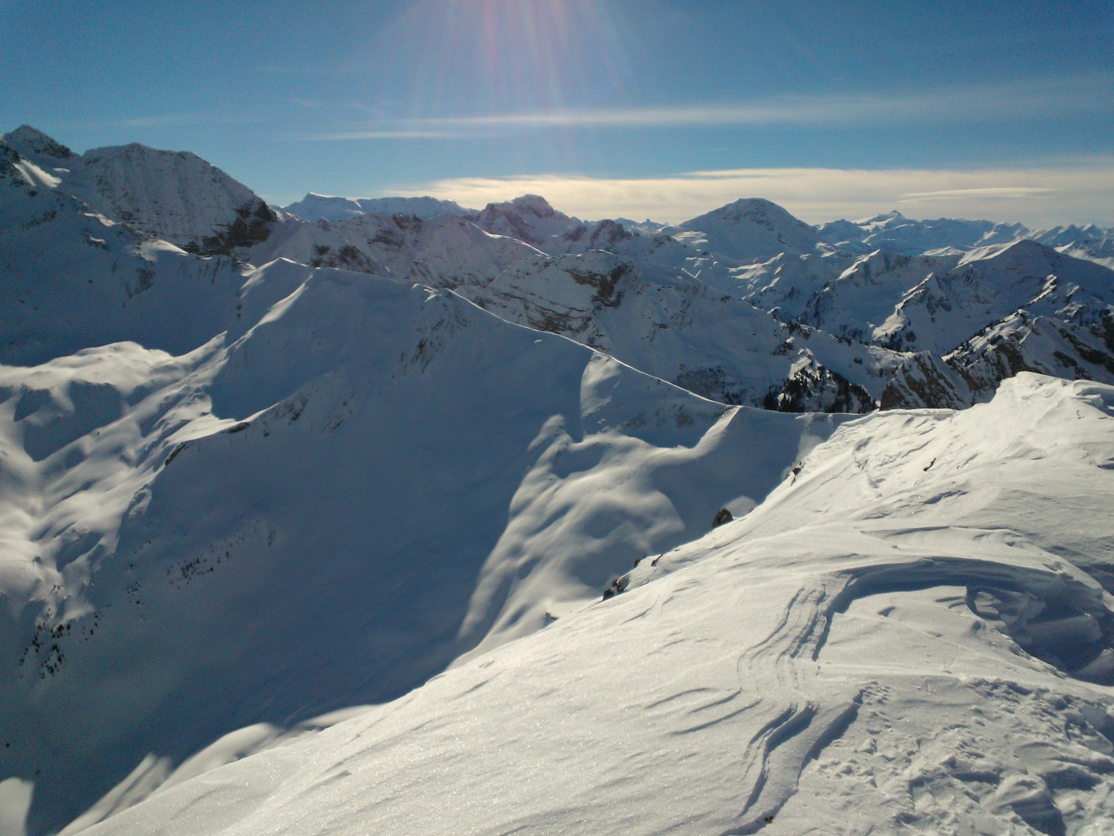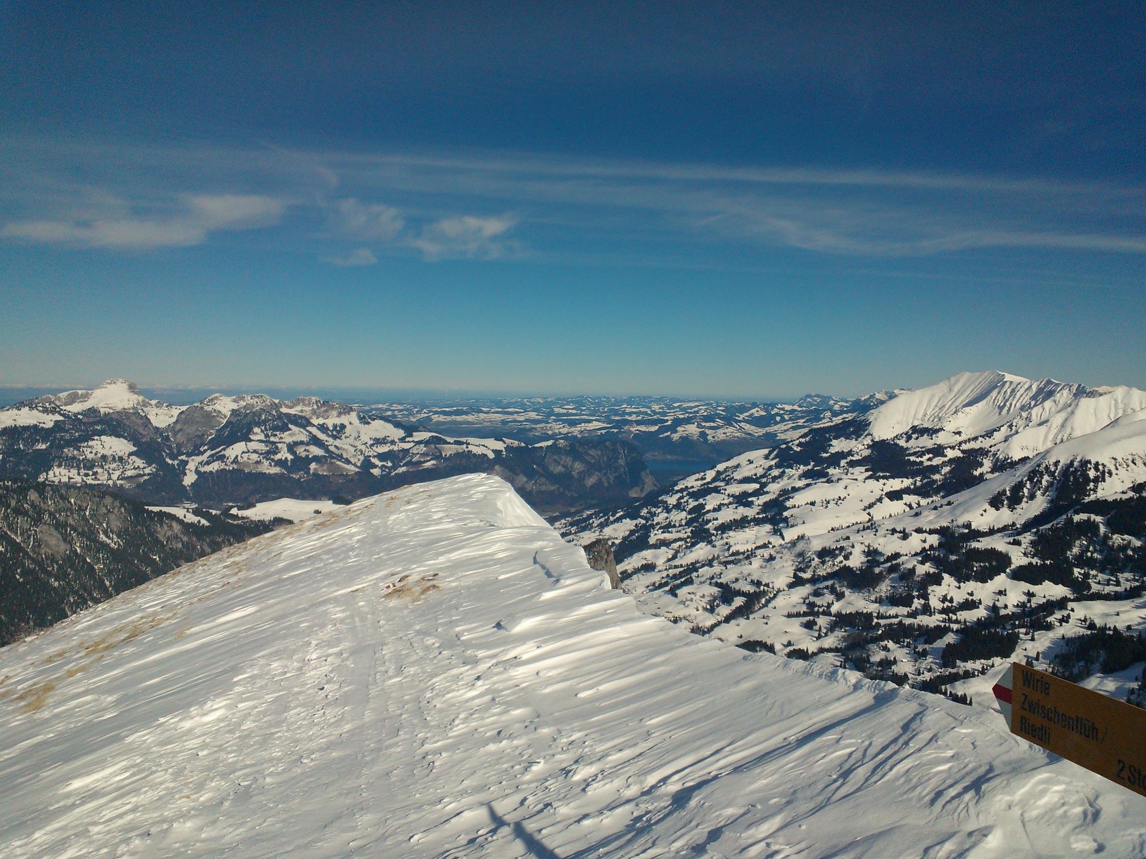 Minus 4 Grad und stahlblauer Himmel beim Start am Tiermatti, ein prächtiger Tourentag. Leider Lawinenbulletin wieder mal auf Stufe 3, also Vorsicht bei der Tourenwahl. Das Wiriehorn ist bei richtiger Routenwahl ungefährlich. Aufstieg auf sehr gut angelegter Spur, zuerst durch Bruchharst mit etwas Neuschnee, nach den ersten Hängen dann Pulver. Wenn man aus dem schattigen Wald kommt und den schönen und breiten Gipfelhang in der Sonne sieht... Herrlich. Der Gipfelhang ab Alp Wirie ist relativ verweht. Wie meistens :-). Oben windig und kalt, daher nicht allzulange Gipfelrast, die habe ich dann bei der Alp Wirie im strahlenden Sonnenschein nachgeholt. Abfahrt viel besser als erwartet, denn die Rinne rechts des Gipfels (von unten gesehen) hatte Pulver und war nicht verweht. Dann tolle Verhältnisse im Wald, das hatte ich erhofft. Bester Pulver! Die Hänge herunter zum Tiermatti waren trotz Bruchharsch schwingbar. Alles in allem sehr lohnend.