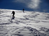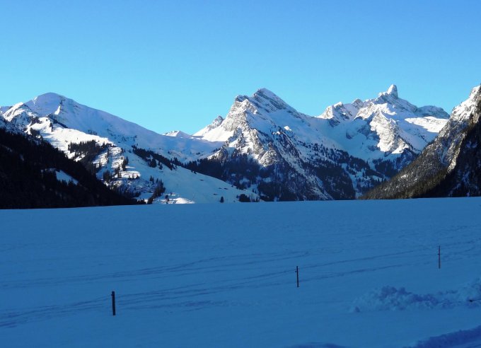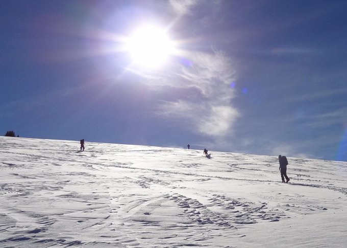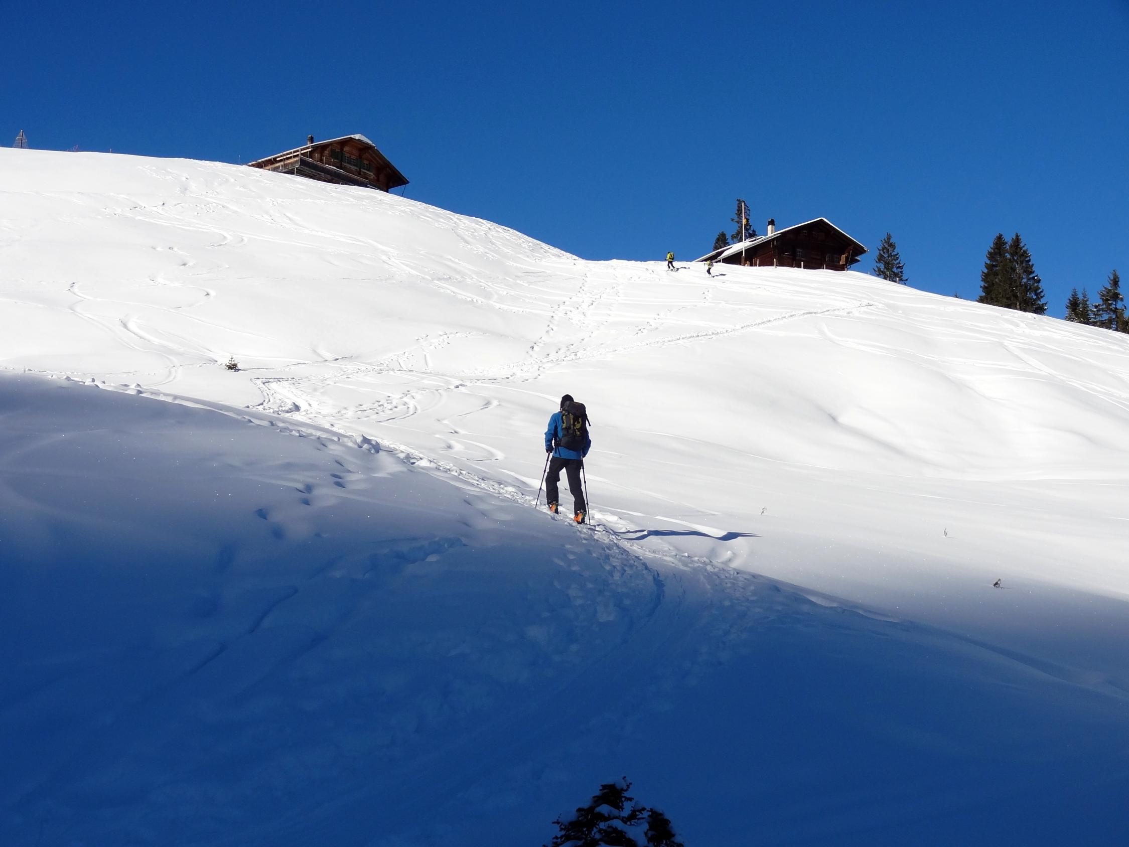Genügend Schnee. Der Neuschnee hat gereicht um die alten Spuren ein wenig zu überdecken. Schattenhänge sind bei der jetzigen Lage zu bevorzugen. Allerdings mit der gebotenen Vorsicht!