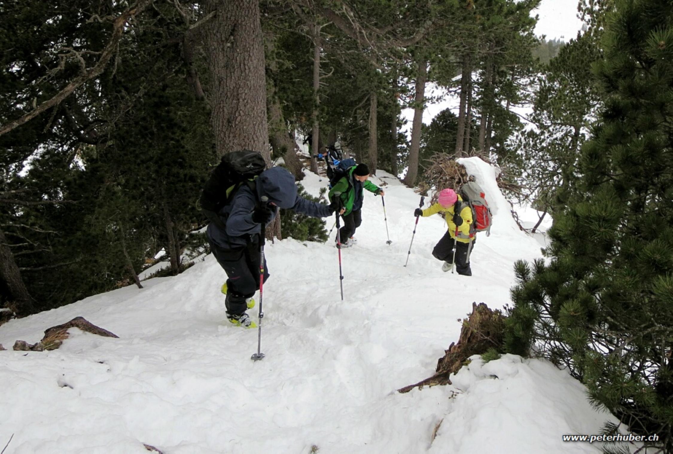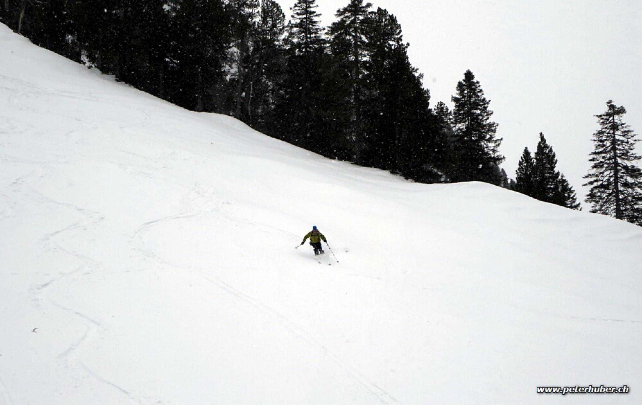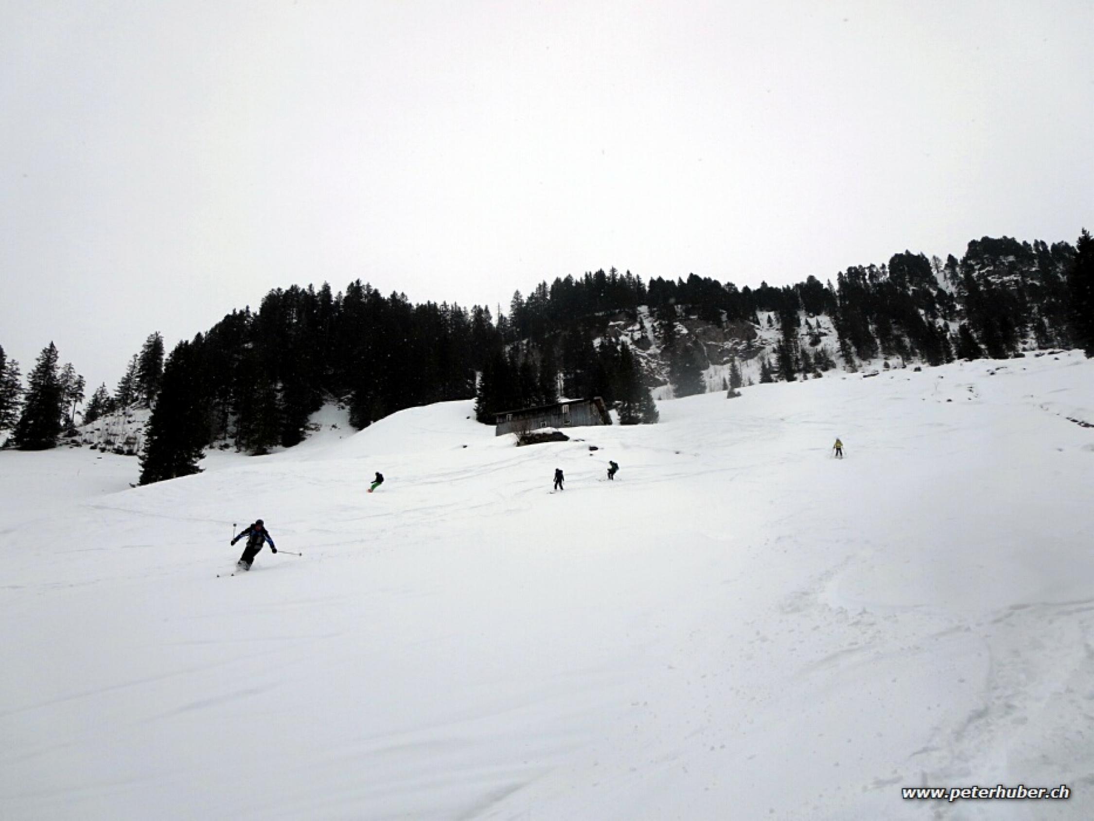 Es hat genug Schnee auf der ganzen Tour. Unterhalb Grossweid wählten wir die Piste für die Abfahrt um den sehr feuchten Schnee zu meiden. Auf der Abfahrt recht gute Verhältnisse.