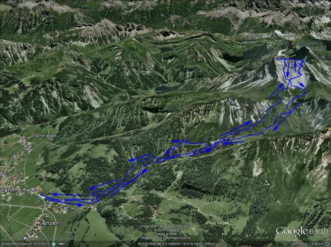 Tannheim (Parkplatz West) - Älple - Gaiseck - Gipfel - direkte Gipfelrinne - Älple - Startpunkt