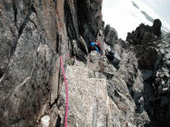 Zustieg über Sidelengletscher und SE- Sporn beste Verhältnisse. Galengrat im oberen Teil ausgeapert und gefroren mit aufgeweichter Oberfläche (trotzdem sehr gut zu machen), etwas unglückliche Spuranlage sehr nahe an Wächten. Tolle Aussicht!