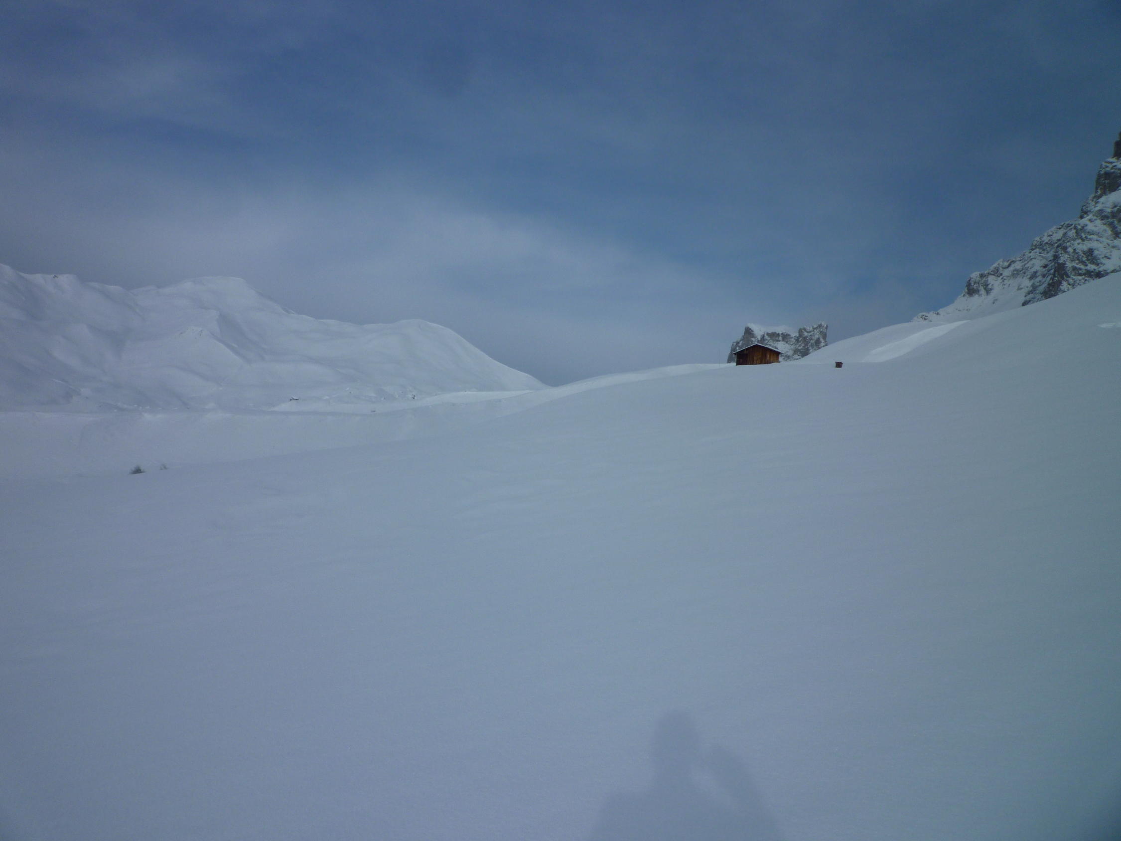 15 cm Neuschnee auf tragender Unterlage - oder kurz gesagt PERFEKT !!! Diesmal so scheint es, ist der Schnee ohne grossen Wind gefallen, zumindest haben wir keine Schneeverwehungen (auch nicht im Gipfelbereich) gesehen.