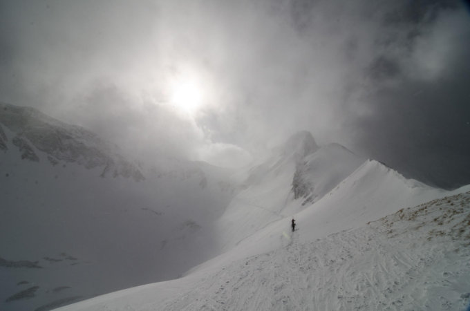 Viel Wind. Ganz wenig Neuschnee war vorhanden, aber ziemlich bald ist der Schnee nur vom Wind geprägt. Trotzdem über grosse Teile nicht hart gepresst, sonder spassig zum fahren. Wir gingen nicht ganz bis auf den Gipfel, ab der Scharte hatte es zuviel Wind, sich hinunter blasen lassen macht ja keinen Sinn.