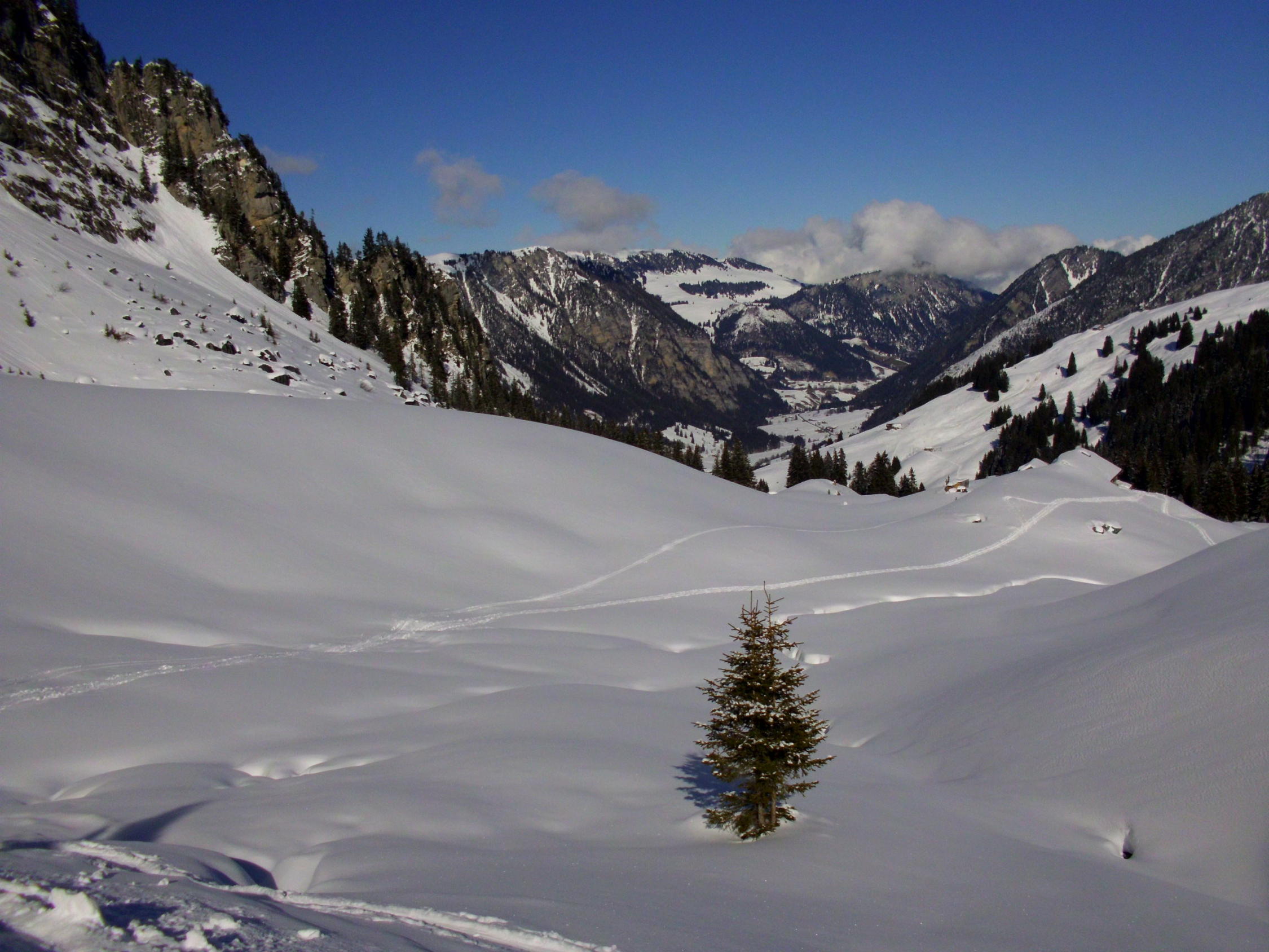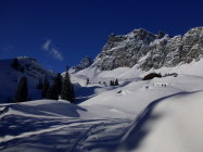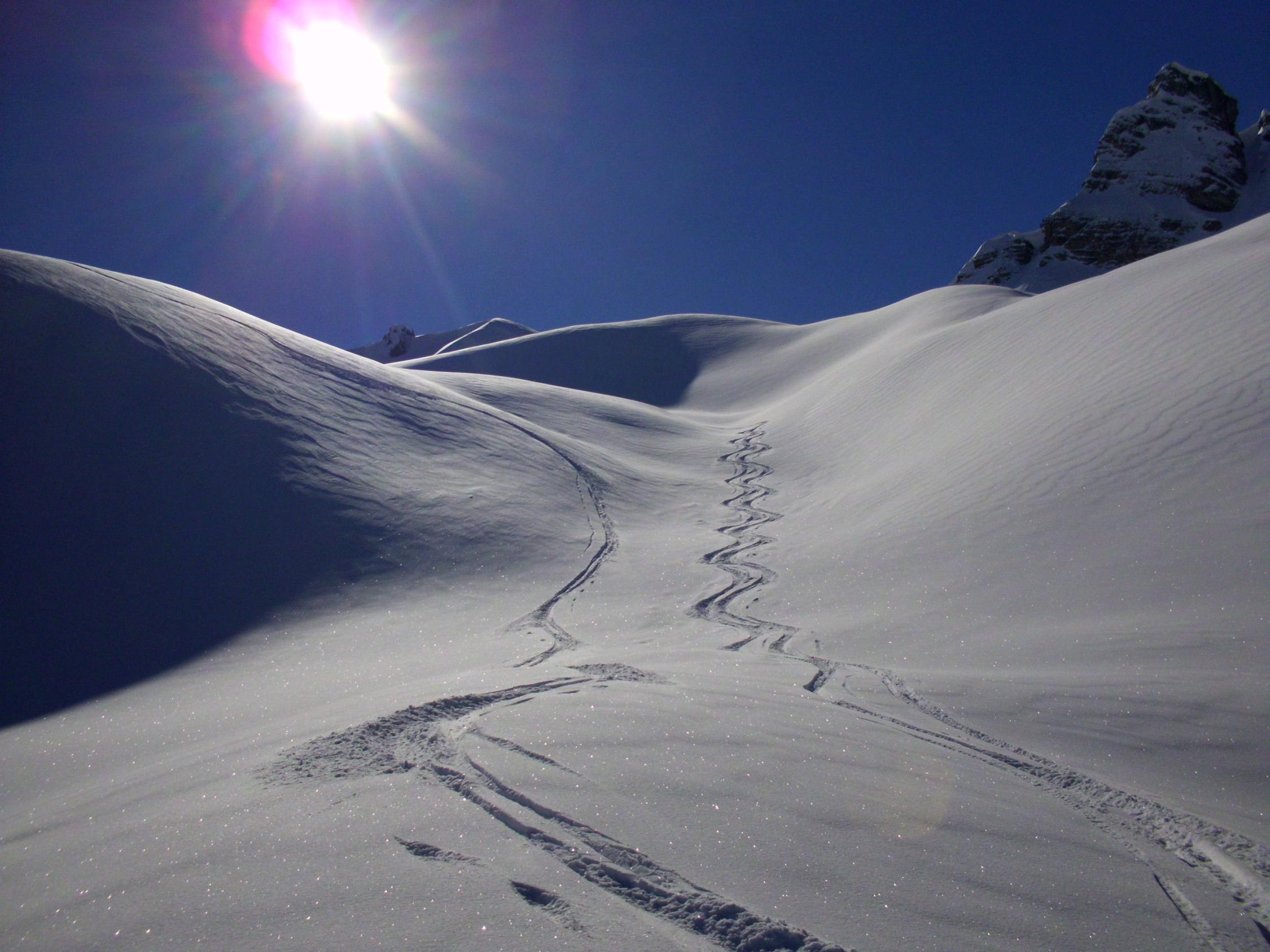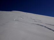 Am Gipfelhang etwas verblasen, wenn man tendenziell richt. Färmeltal abfährt ohne Steinkontakt.
