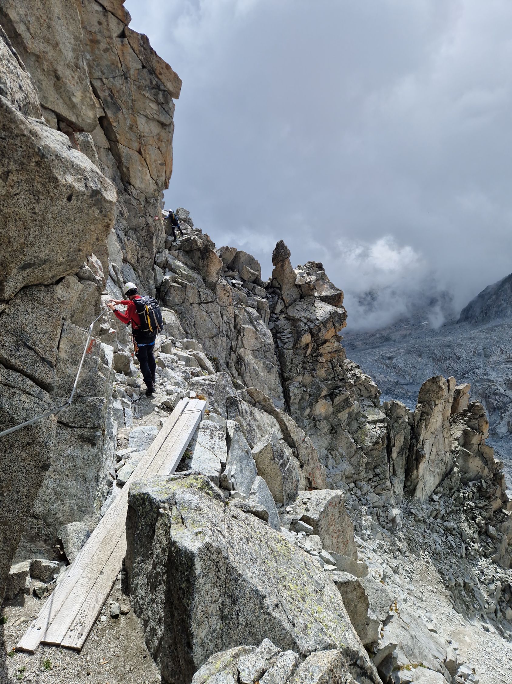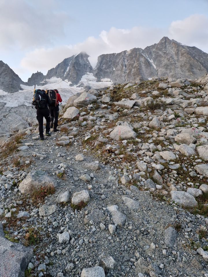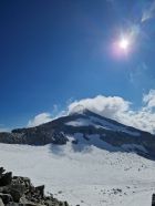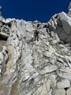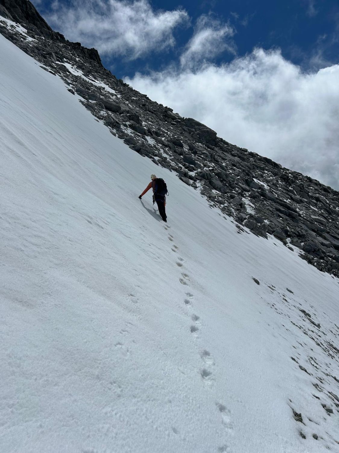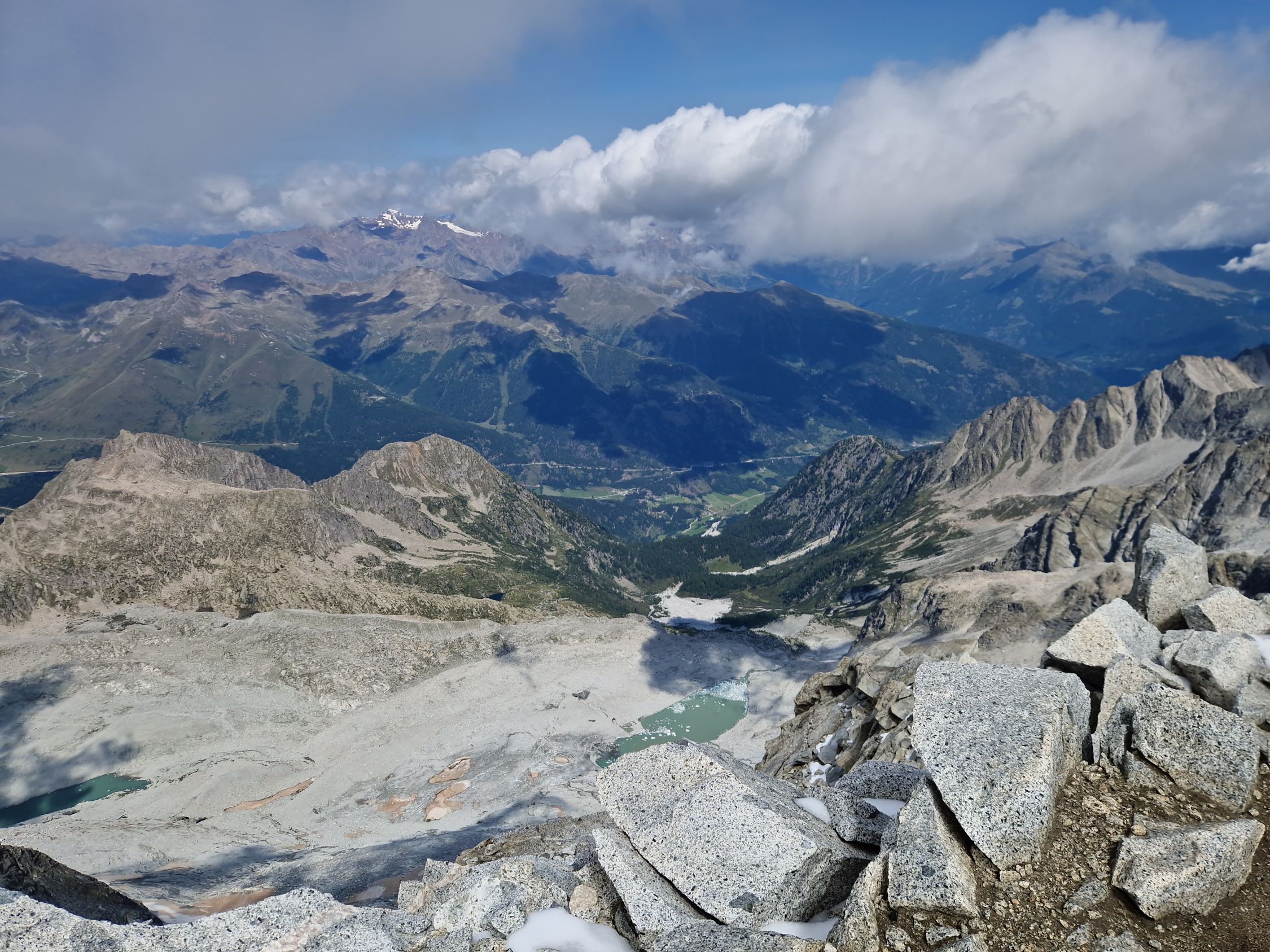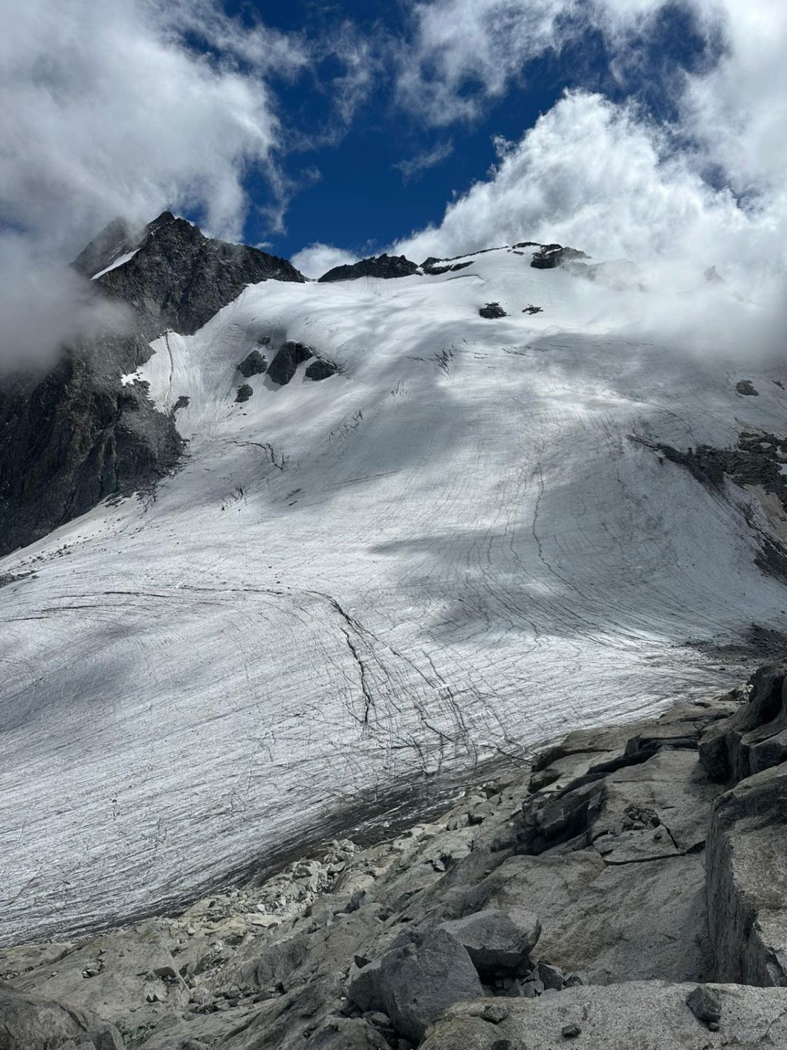 Start von der Rifugio Denza um 5.30 Uhr. Der Gletscher weist perfekte Verhältnisse auf. Wir haben ihn auf der Höhe von rund 2.800 über ein schönes Band erreicht. Von der Sella Freshfield führt ein nicht mehr über alle Zweifel erhabenes Fixseil rund 40 m auf die Südseite hinab. Hier Vorsicht walten lassen. Beim Einstieg zum Kamm in Richtung Gipfel haben wir nicht gleich die tiefste Stelle anvisiert, sondern sind rund 100 m später an einer geeigneten Stelle in die Felsen gewechselt und dort dann prompt auf Steinmännchen gestoßen. Das kurze Schneefeld vor dem finalen Aufschwung weist dann perfekten Trittfirn auf. Das Gipfelerlebnis ist phänomenal. Wir machten in der Folge die Überschreitung ins Val d’Amola. Die klettersteigähnlichen Stellen sind alle super im Schuss. Blocksteinfreaks kommen im Anschluss ebenfalls voll auf ihre Kosten. Wir sind dann direkt zum Parkplatz abgestiegen, was zwar machbar ist, sich aber letztlich doch sehr in die Länge zieht. Als zusätzlicher Stützpunkt bietet sich die Rifugio Segantini an.