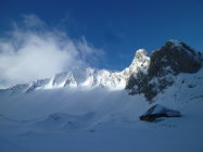 - E-Couli (südlicheres): Schneeverfrachtungen darin, doch erschien uns die Abfahrt zu verantworten. 1 Spur von gestern sowie ein 10cm Anriss oben beim seitlichen Übergang von wenig zu viel Schnee lagen drin. Bei uns kein nennenswerter Schneeabgang.