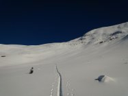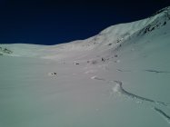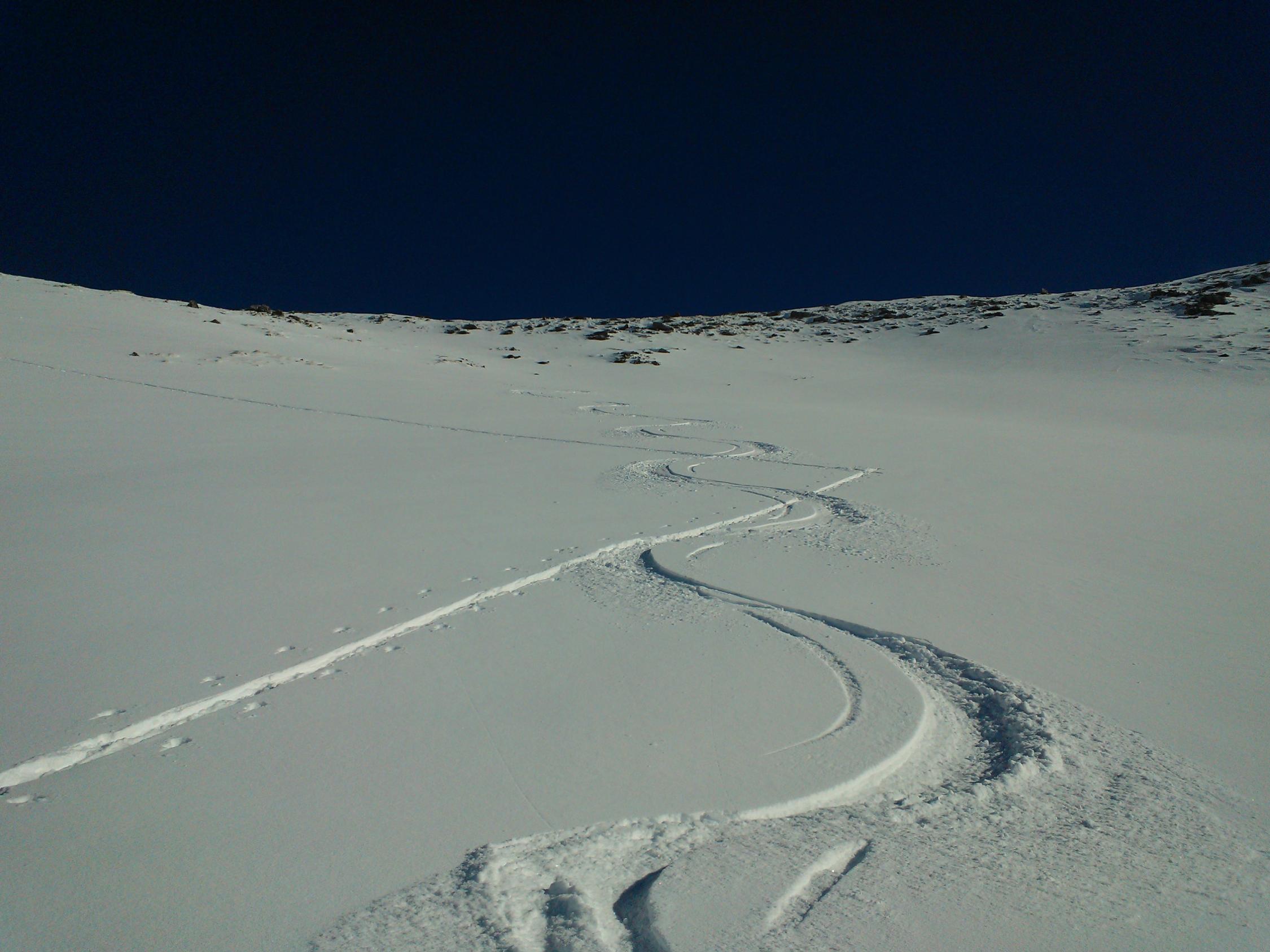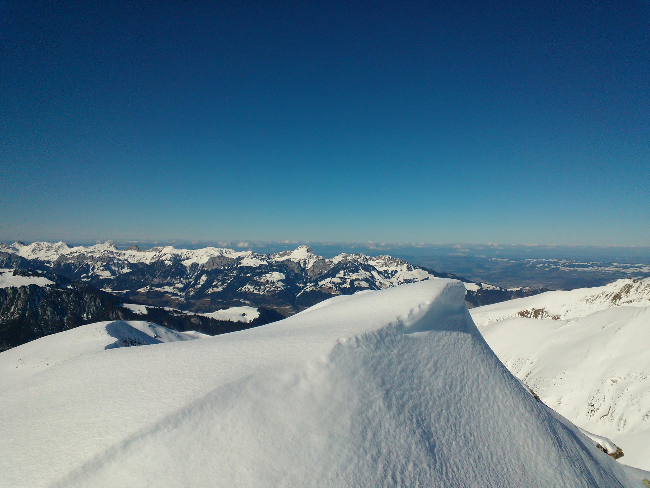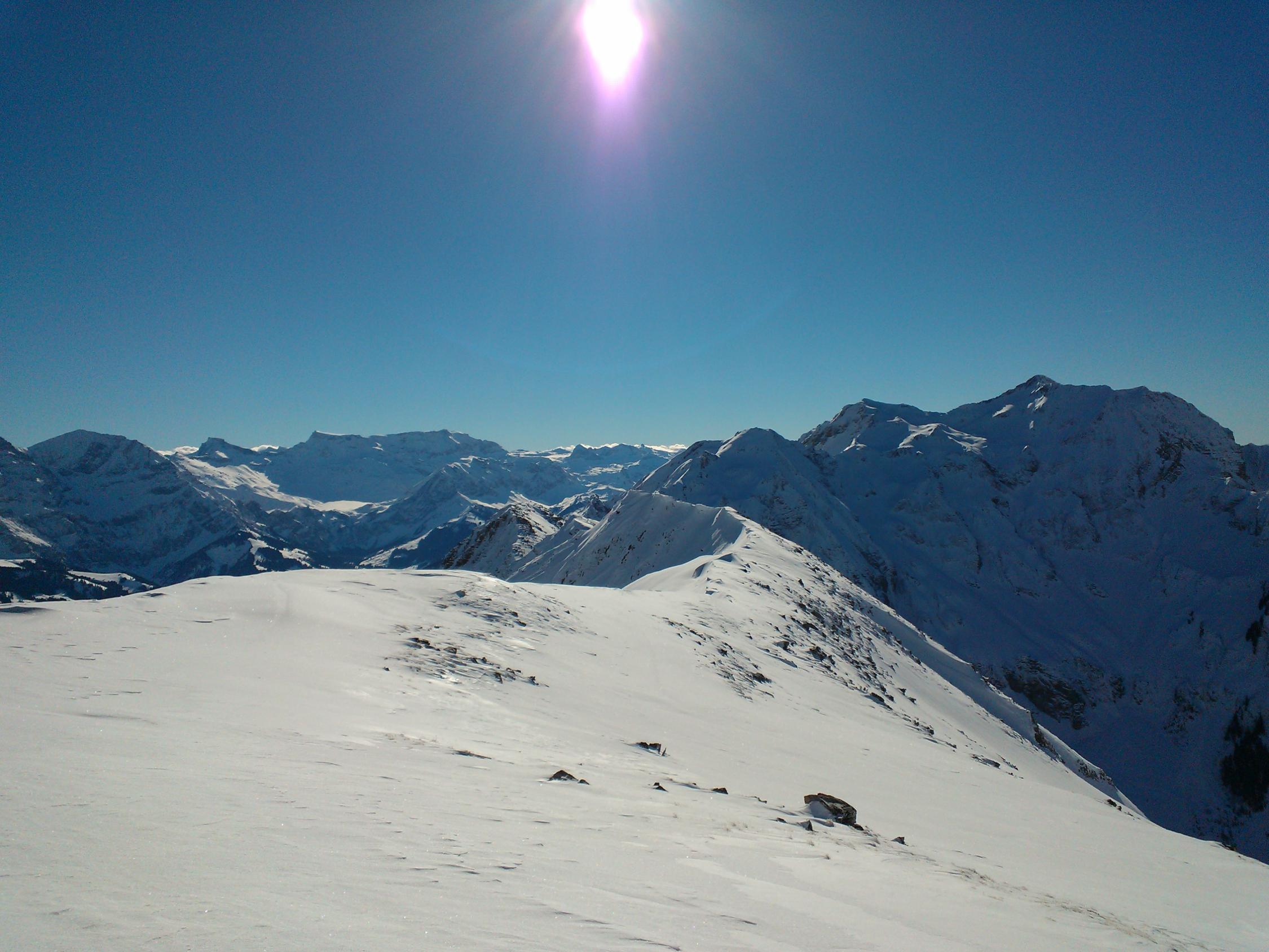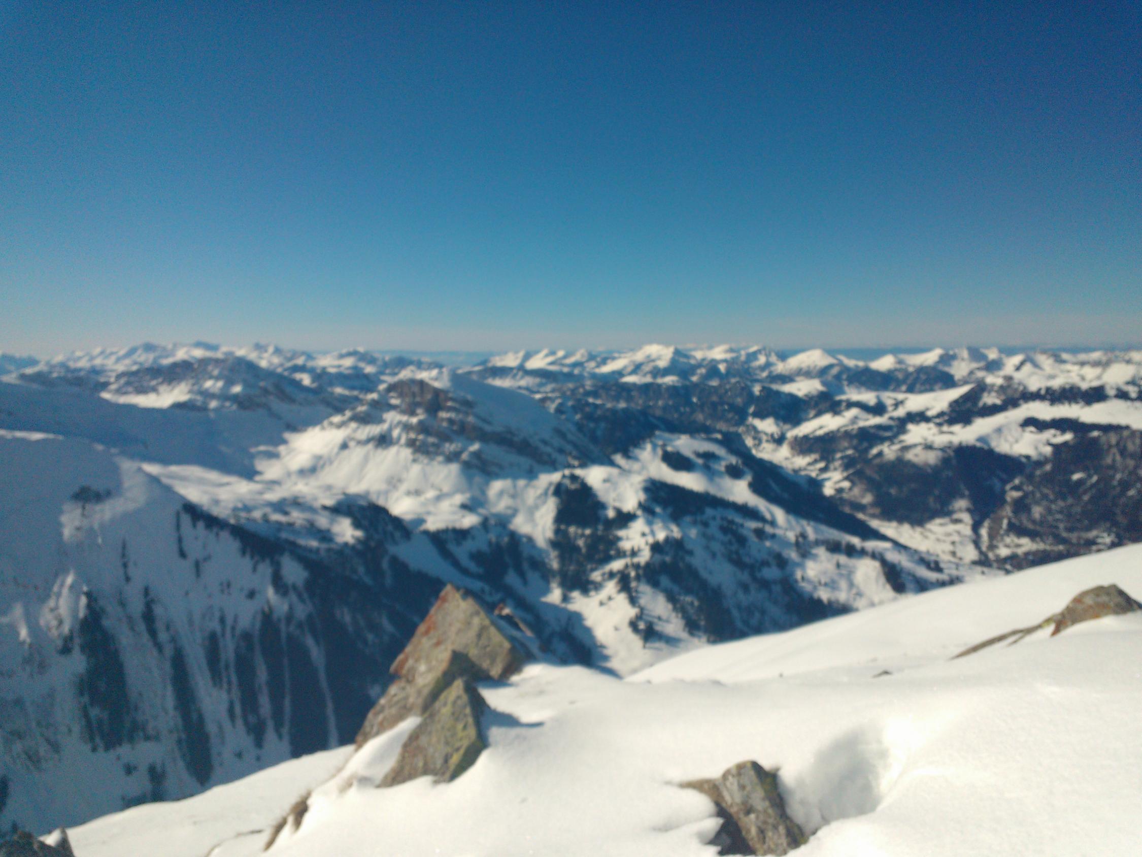 Strahlendes Wetter, Start beim Parkplatz bei 0 Grad. Da ich den Faserpelz vergessen hatte, war ich für einmal froh über die relative Wärme! Zuerst geht es halt eine Stunde der Strasse nach, das ist ein bisschen ein Gelatsche. Aber andererseits ist genau das der Grund, weshalb man hier keine Menschenmassen trifft! Nach Erbs Chirel dann die Querung zur Alp Hohniesen, das war lawinenmässig etwas heikel, aber verantwortbar. Der Neuschnee ist teils abgerutscht. Oberhalb Alp Hohniesen dann bis zum Gipfel sicher, wobei ich den letzten steileren Teil des Aufstiegs heute spuren durfte und auch allein am Gipfel war. Gipfelrast ohne Pullover, naja :-). Die Abfahrt war bis zur Alp Hohniesen vom Wechsel zwischen Pulver, abgeblasen und Windharsch geprägt. Es gelang aber sehr oft, den Pulver zu finden, somit teils sehr schön. Der Hammer waren dann die steilen Hänge unterhalb Alp Hohniesen bis Erbs Chirel: Alles Toppulver, wow! Vergass sogar zu fötelen. Dann die Strasse bis zum Auto unproblematisch. Insgesamt wieder ein Supertag.
