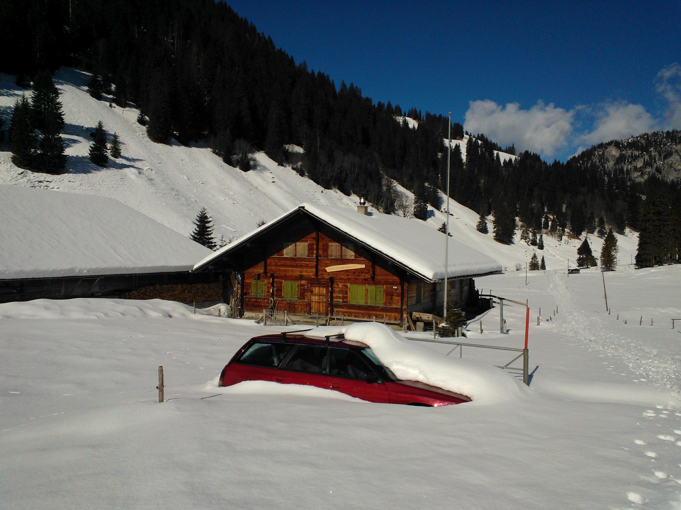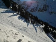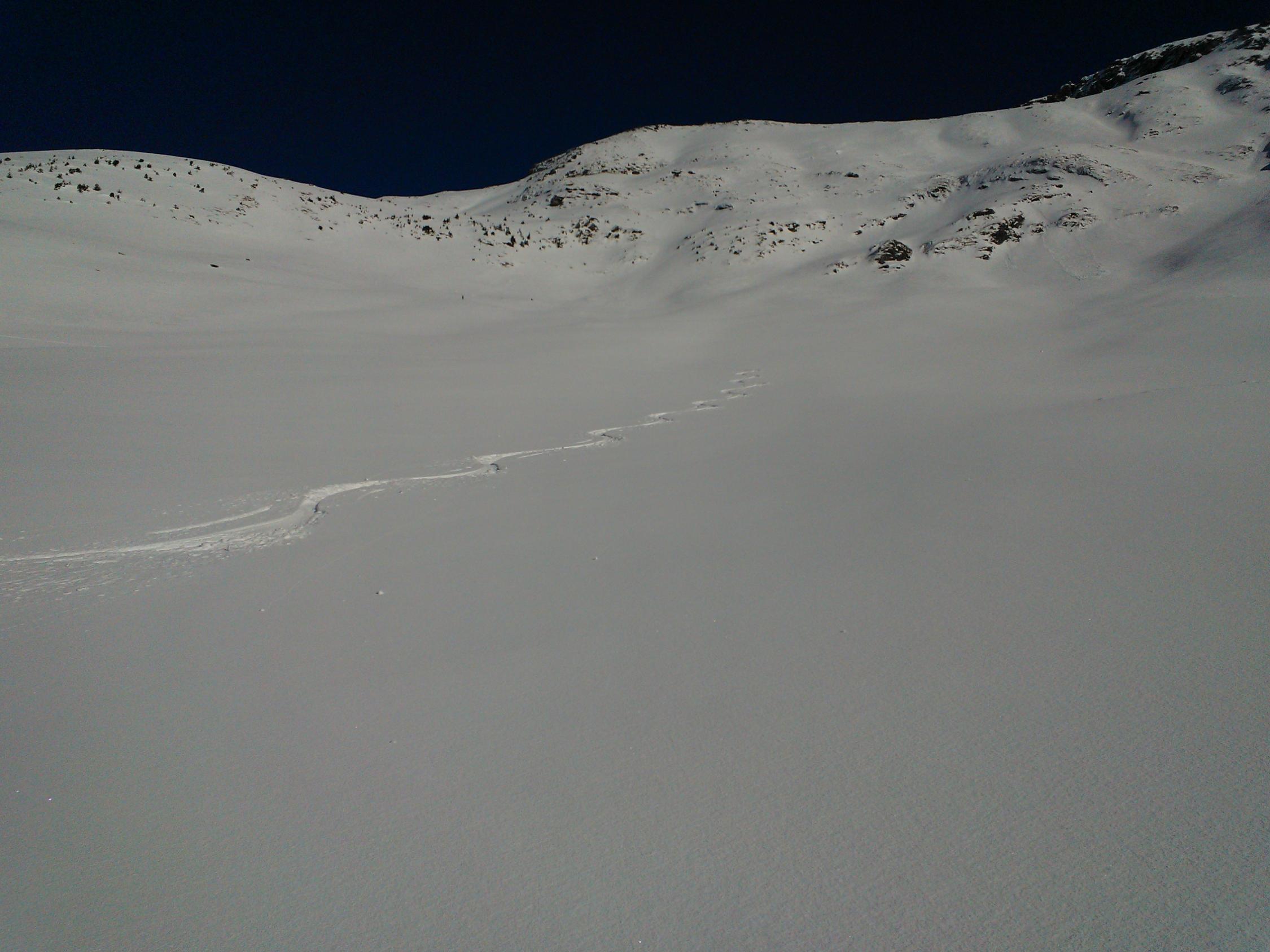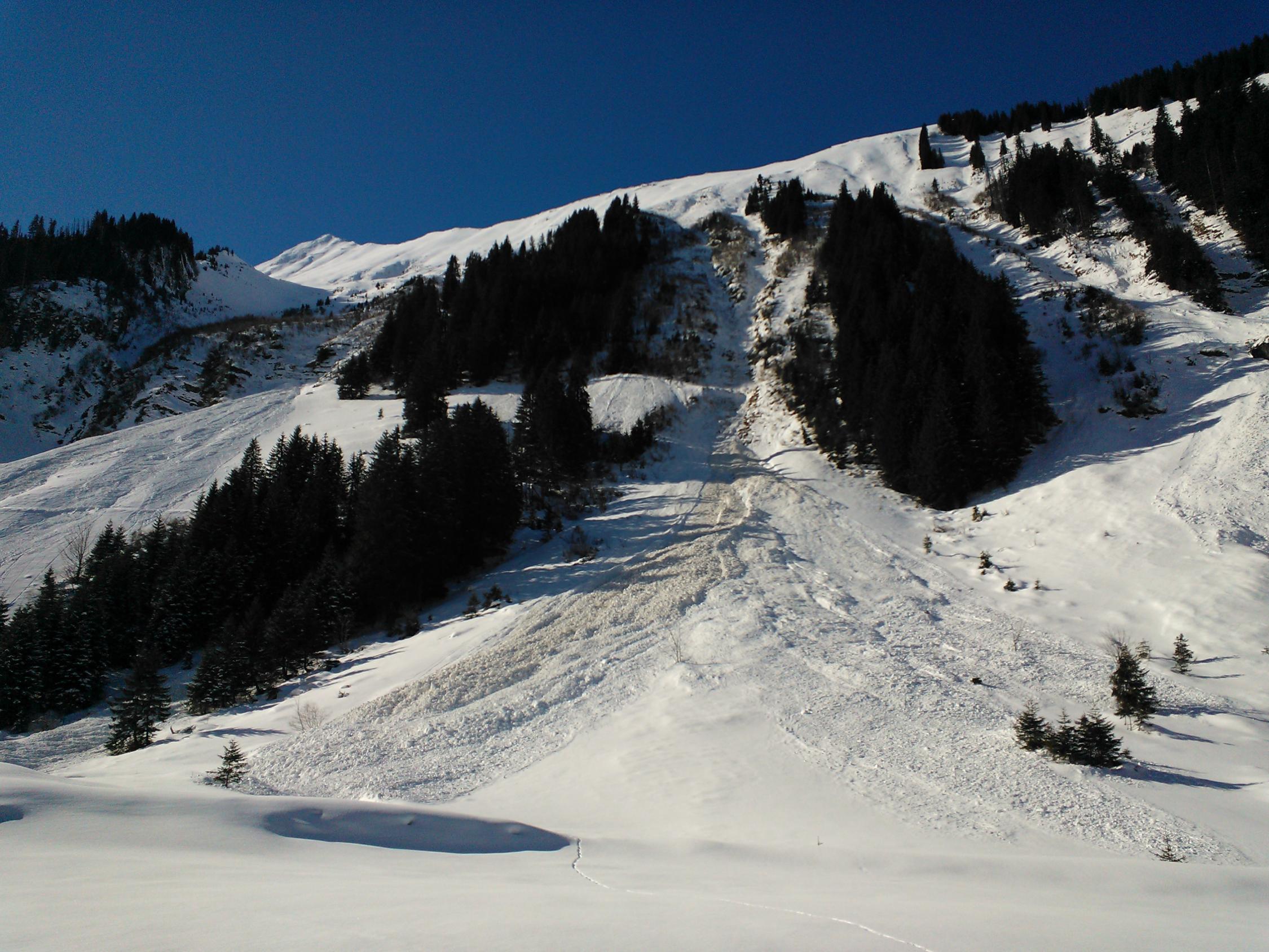 Grosse Lawinen vom Cheibehorn-Grat Richtung Chirel runtergekommen, im Aufstieg zur Alp Hohniesen einige Oberflächenrutsche, weiter oben im Steilen auch da und dort ein Brett. Stufe 3...
