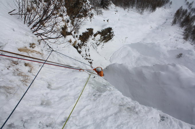 Wenig Eis, viel Schnee. "Tuborg" und "Cascade de Lillaz" waren je nach Linie mehr oder weniger ausgehackt.