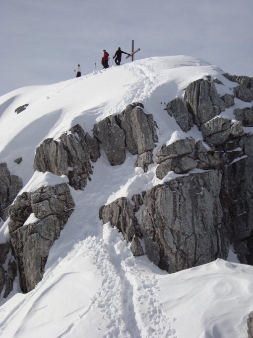 Einige sonneneinstrahlungsbedingte Rutsche von den steileren Hängen unterhalb des Felsbandes in Gipfelnähe.