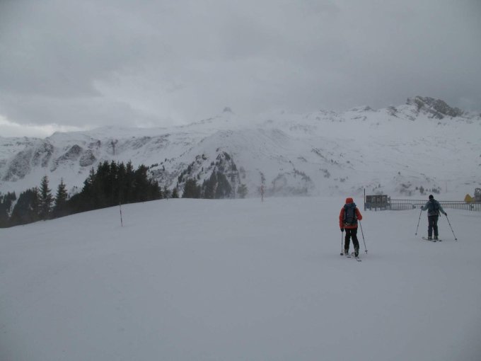 Abgeblasene Rippen und Kämme, jedoch immer genug Schnee. Die Mulden schön gefüllt mit Pulver.