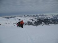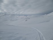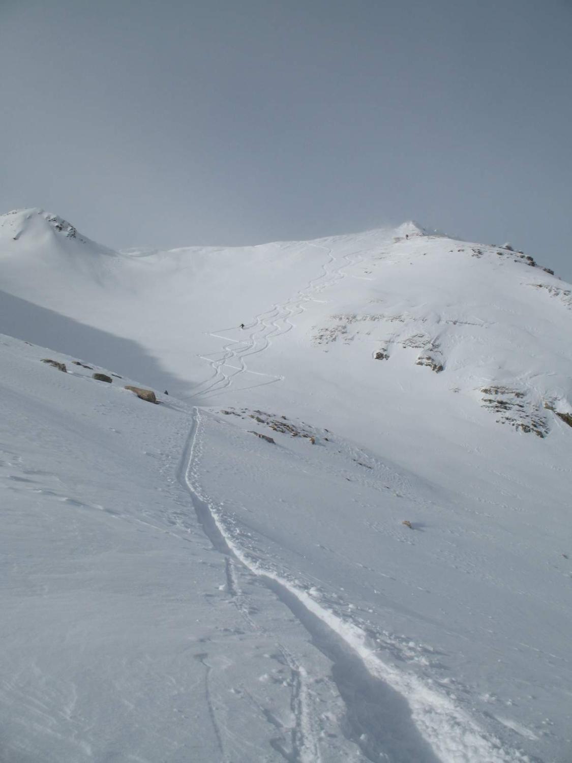 Windig bis stürmisch. Schlechte Sicht. Alle Abfahrten in schönstem Pulverschnee (trotz extermer Windverfrachtung nicht windgepresst).