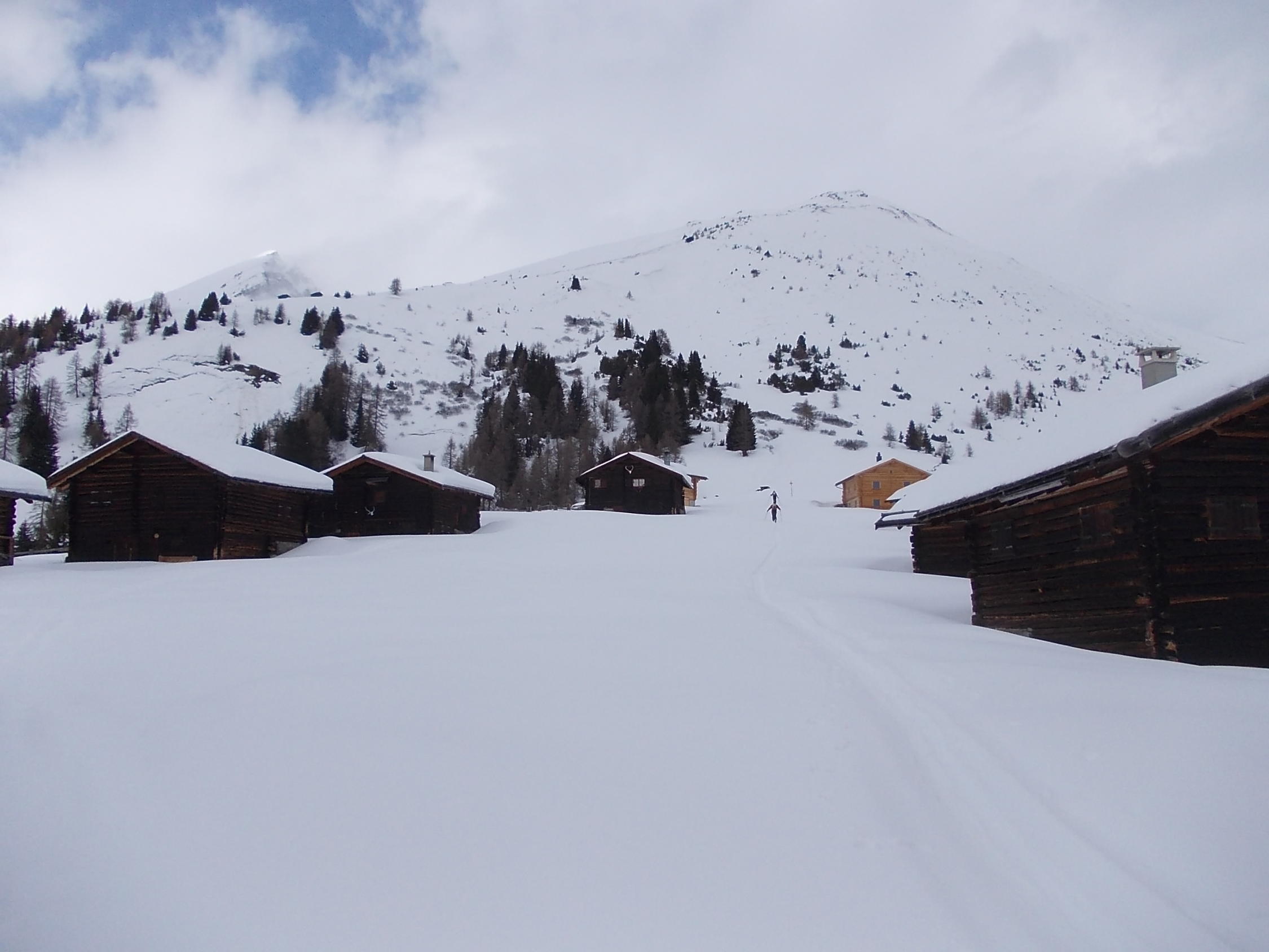 Tour mit Peter und Stefan auf Skiern, ich mit Schneeschuhen. Wir waren allein unterwegs, die Spur musste neu gelegt werden.